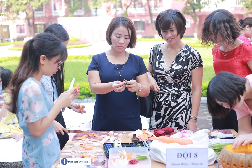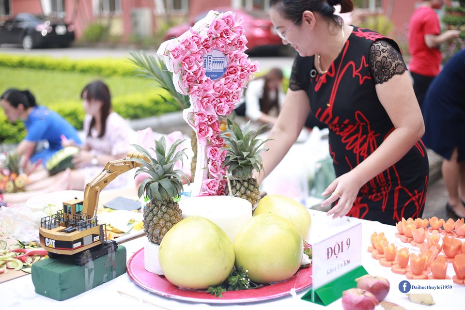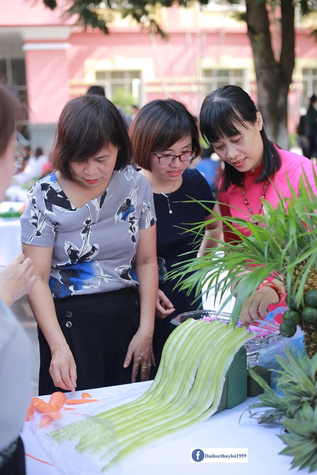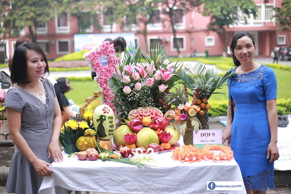 Với sự khéo léo trong kỹ thuật cắt tỉa củ, quả, từng sản phẩm với những màu sắc tươi mắt đã tạo ra không khí vui vẻ trong dịp kỷ niệm ngày phụ nữ Việt Nam 20 tháng 10 năm nay. Hội thi do BCH Công đoàn Trường Đại học Thủy lợi tổ chức.