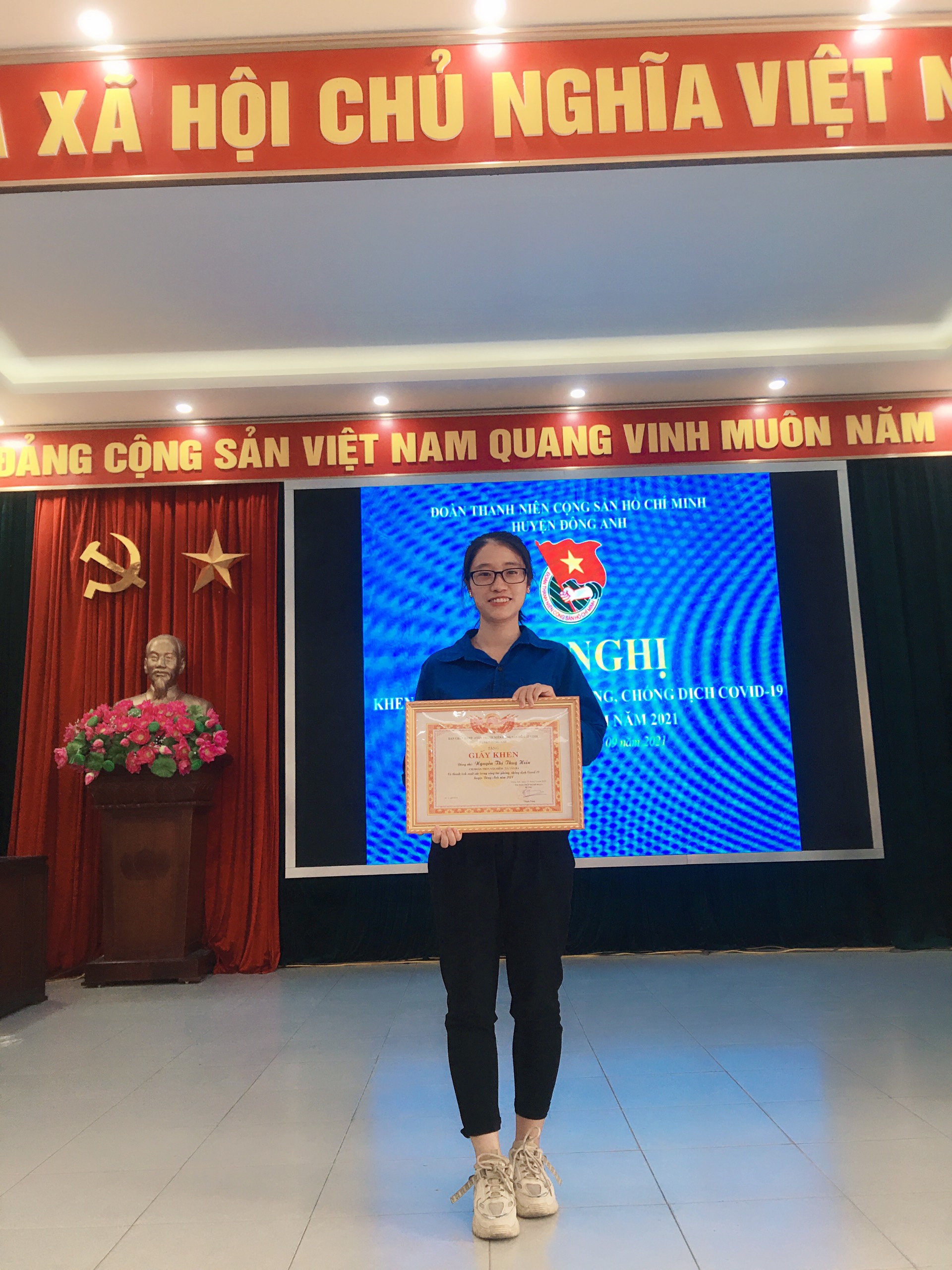 Không chỉ có thành tích học tập nổi trội, nữ sinh khóa 60 còn tích cực trong các hoạt động thiện nguyện, công tác xã hội ở trường và địa phương. Hiền cho biết: “là một đoàn viên, em thấy bản thân cần có trách nhiệm với các hoạt động cộng đồng và trong đó có công tác phòng chống dịch Covid-19”