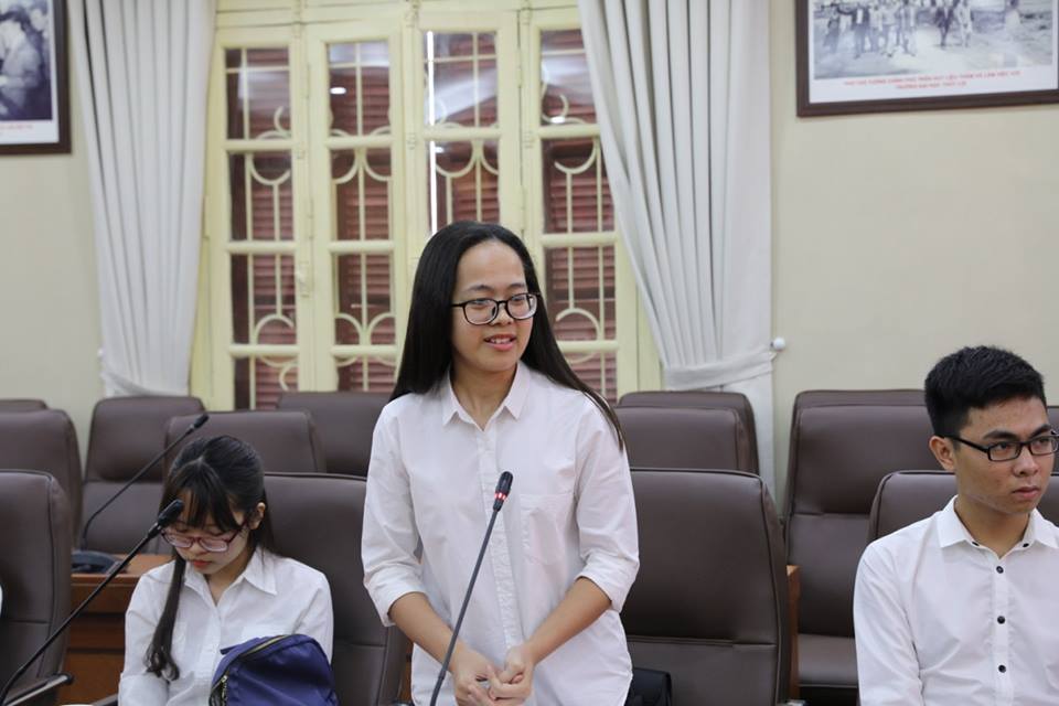 Trần Kim Anh – sinh viên lớp 58KTH phát biểu cảm ơn sự quan tâm của Nhà trường