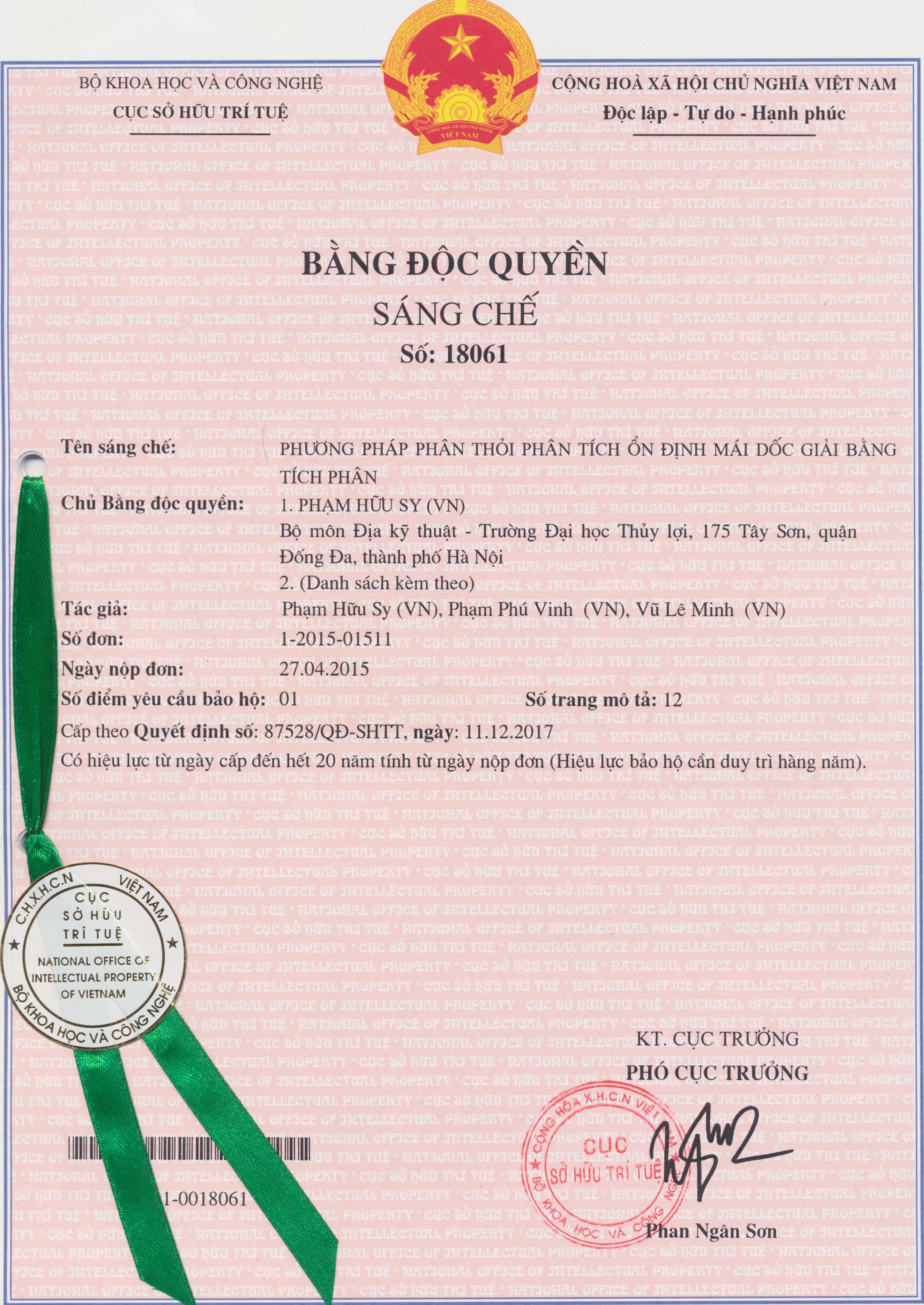 2. Phạm Phú Vinh (VN) Bộ môn Địa kỹ thuật -Trường Đại học Thủy lợi, 175 Tây Sơn, quận Đống Đa, thành phố Hà Nội