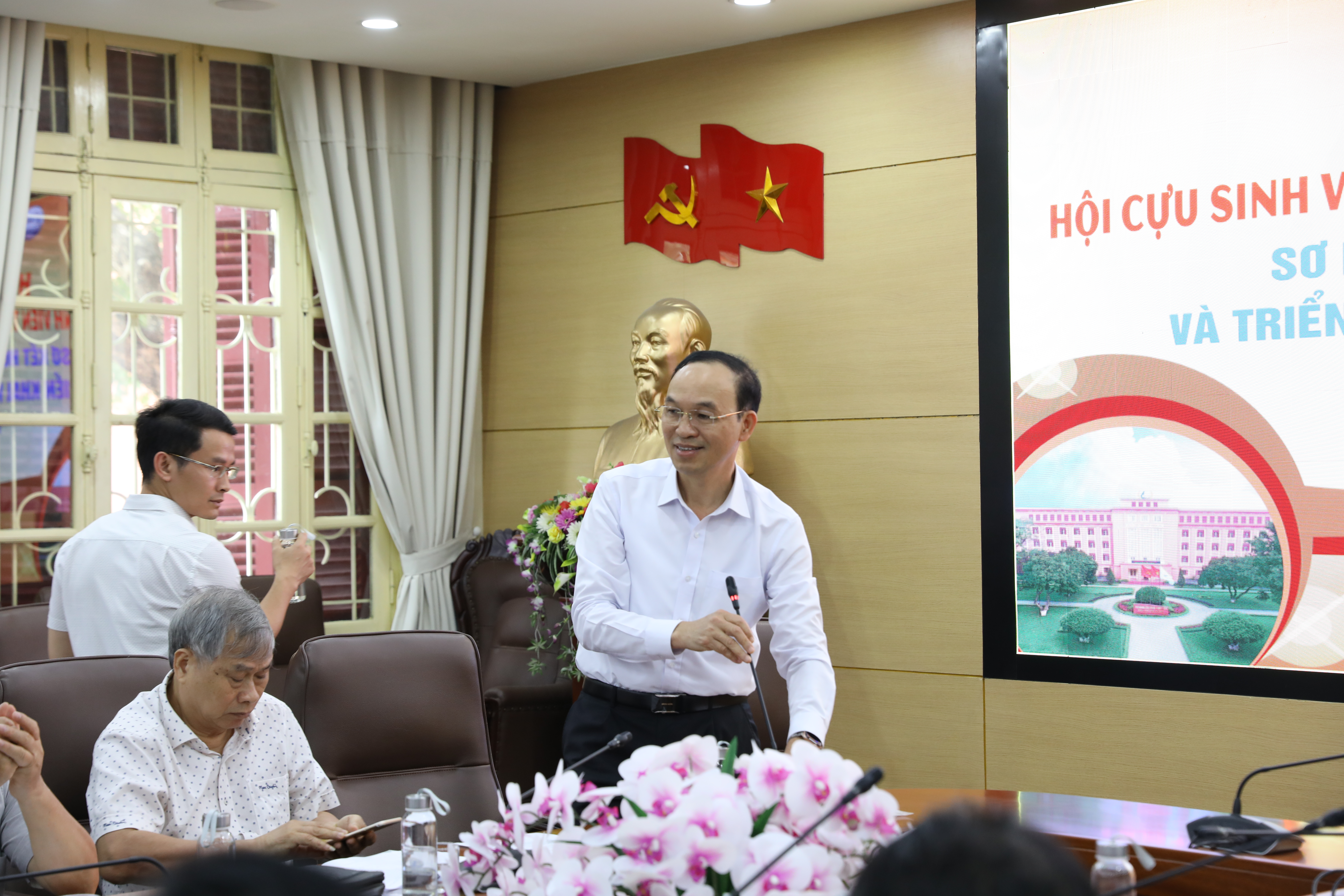 Ban chấp hành Hội cựu sinh viên cùng nhìn lại những hình ảnh của đồng chí Vũ Mão