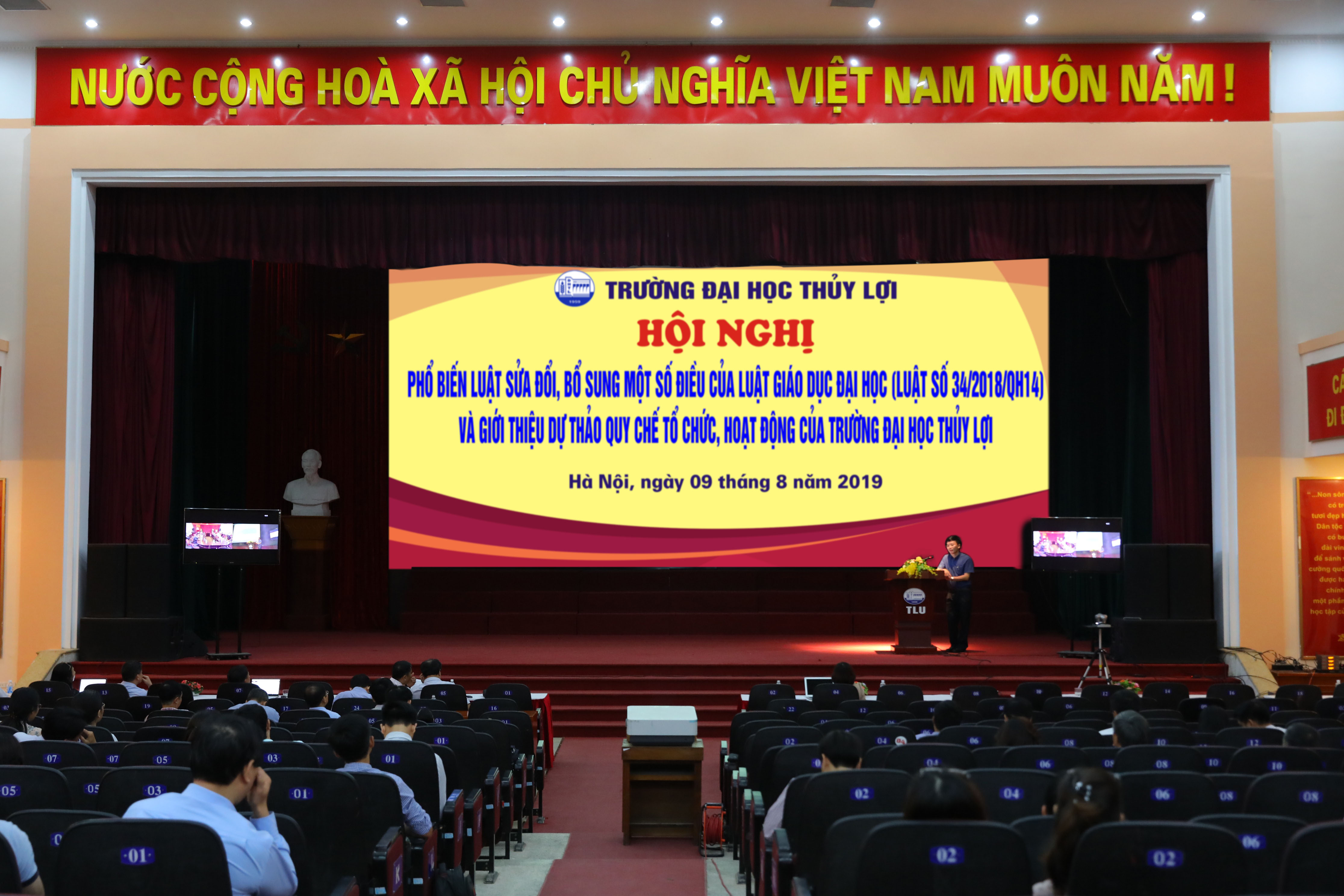 Hội nghị được tổ chức nhằm cung cấp những thông tin bổ sung của Luật Giáo dục đại học đến toàn thể các cán bộ, giảng viên của nhà trường, giúp hiểu rõ hơn về các điều khoản mới, qua đó phục vụ cho công việc quản lý, đào tạo của Trường Đại học Thủy lợi trong giai đoạn sắp tới.