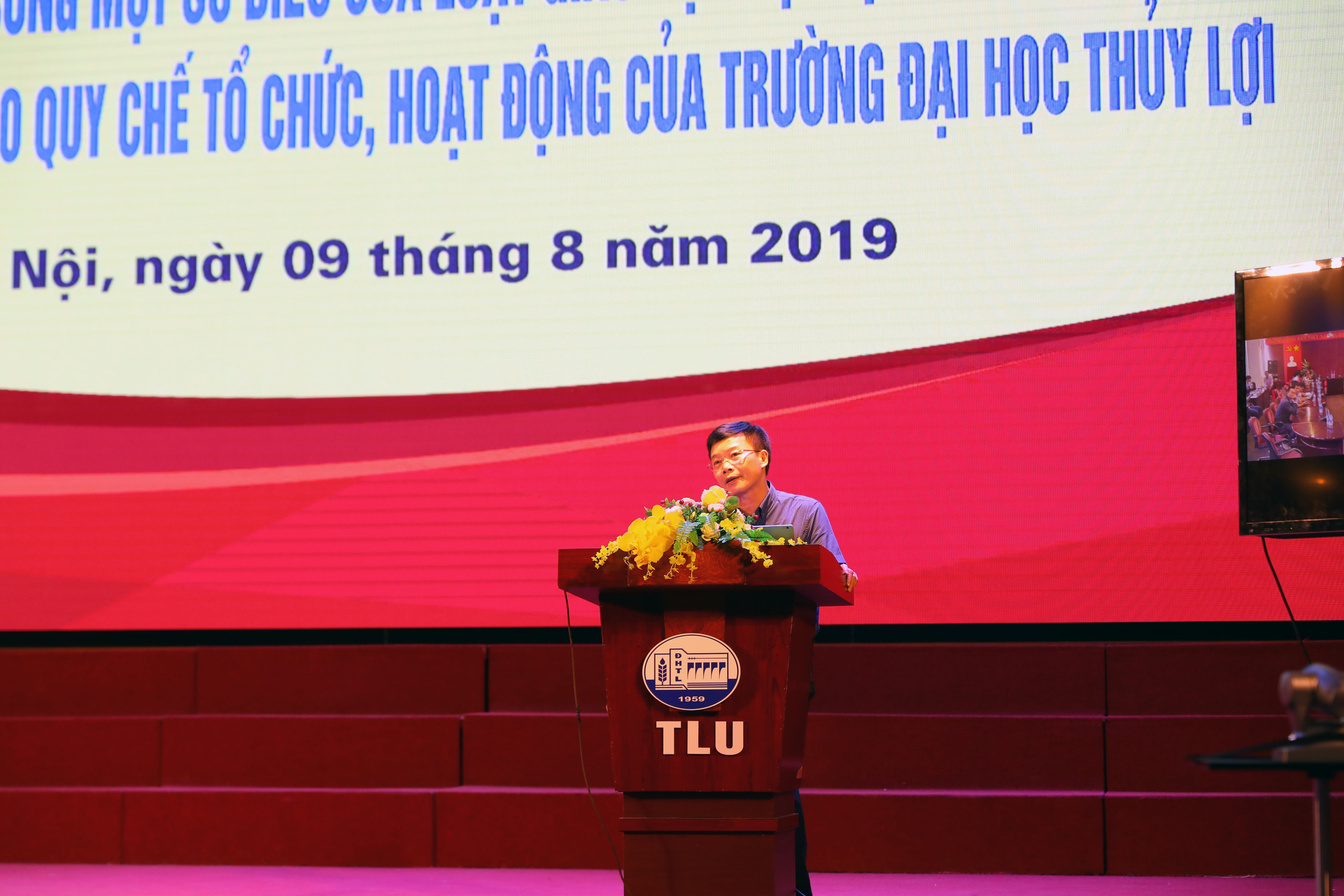 Cũng tại Hội nghị, NGND.GS.TS Nguyễn Quang Kim cũng giới thiệu đến toàn thể cán bộ, giảng viên dự thảo Quy chế tổ chức và hoạt động của Trường Đại học Thủy lợi. Theo đó, sau khi lấy ý kiến góp ý thông qua, Quy chế sẽ là cơ sở phục vụ cho công việc quản lý, đào tạo của Trường trong giai đoạn sắp tới.