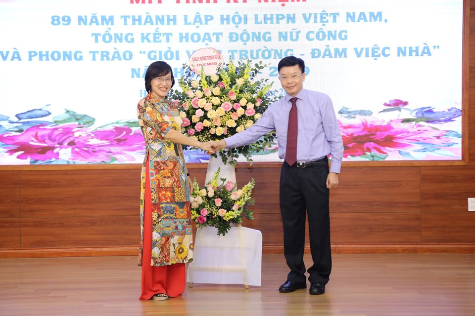 PGS.TS Nguyễn Cảnh Thái, Phó Hiệu trưởng thay mặt BGH chúc mừng toàn thể nữ giảng viên, nữ cán bộ viên chức