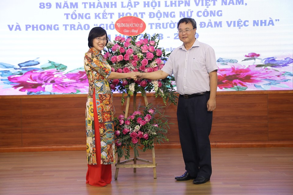 Trong buổi mít tinh đồng chí Nguyễn Thị Thanh Bình, Phó Trưởng ban nữ công thay mặt Ban chấp hành Công đoàn trường ôn lại truyền thống lịch sử của phụ nữ Việt Nam và báo cáo tổng kết hoạt động nữ công Trường Đại học Thủy lợi. Báo cáo nêu: “ Lịch sử dân tộc Việt Nam còn ghi đậm dấu ấn chói ngời của những nữ anh hùng hào kiệt không chịu khuất phục kẻ thù, không chịu sống kiếp nô lệ, đã dám đứng lên đấu tranh, ngăn chặn giặc ngoại xâm, tiêu biểu là bà Trưng, bà Triệu. Đó là những hình ảnh đại diện của phụ nữ qua bề dày lịch sử dân tộc và trong thời bình này, thể hiện sự kiên trung, anh dũng, bất khuất, trung hậu, đảm đang. Khi đất nước đang trong thời kì hội nhập phát triển, chị em phụ nữ Thủy lợi nói riêng và toàn quốc nói chung cũng đang không ngừng nỗ lực hoàn thành trách nhiệm được giao, giữ vững phẩm chất đáng quý của mình"