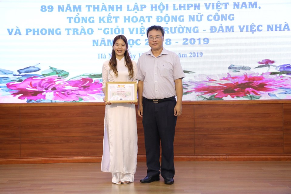 Trong dịp này, Nhà trường biểu dương khen thưởng nữ cán bộ viên chức và nữ sinh trong phong trào thi đua “Giỏi việc trường, Đảm việc nhà“ năm học 2018-2019. Có 21 tập thể và 110 cá nhân nữ cán bộ, giảng viên, 6 nữ sinh đạt thành tích nổi bật trong học tập và rèn luyện được Nhà trường khen thưởng.