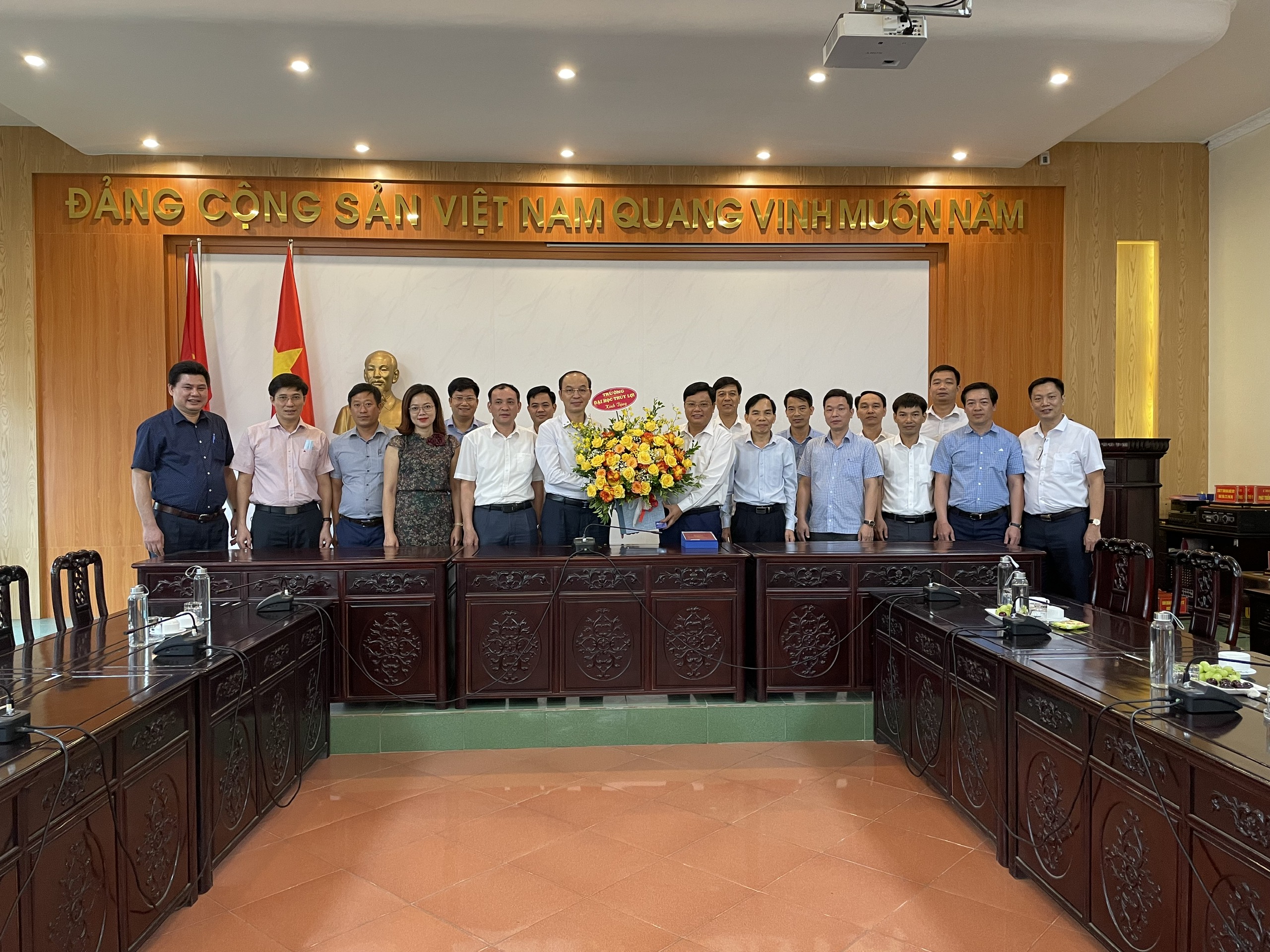 GS.TS Trịnh Minh Thụ – Hiệu trưởng cùng đoàn công tác Nhà trường chúc mừng Ông Nguyễn Minh Tuấn