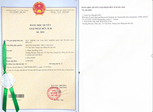 Đây là kết quả của sự hợp tác khoa học giữa Trường Đại học Thủy lợi và Viện Phát Triển Bền Vững Pháp (IRD), nhằm đưa ra giải pháp hiệu quả trong bối cảnh biến đổi khí hậu ngày càng tác động tiêu cực đến môi trường đất nông nghiệp.