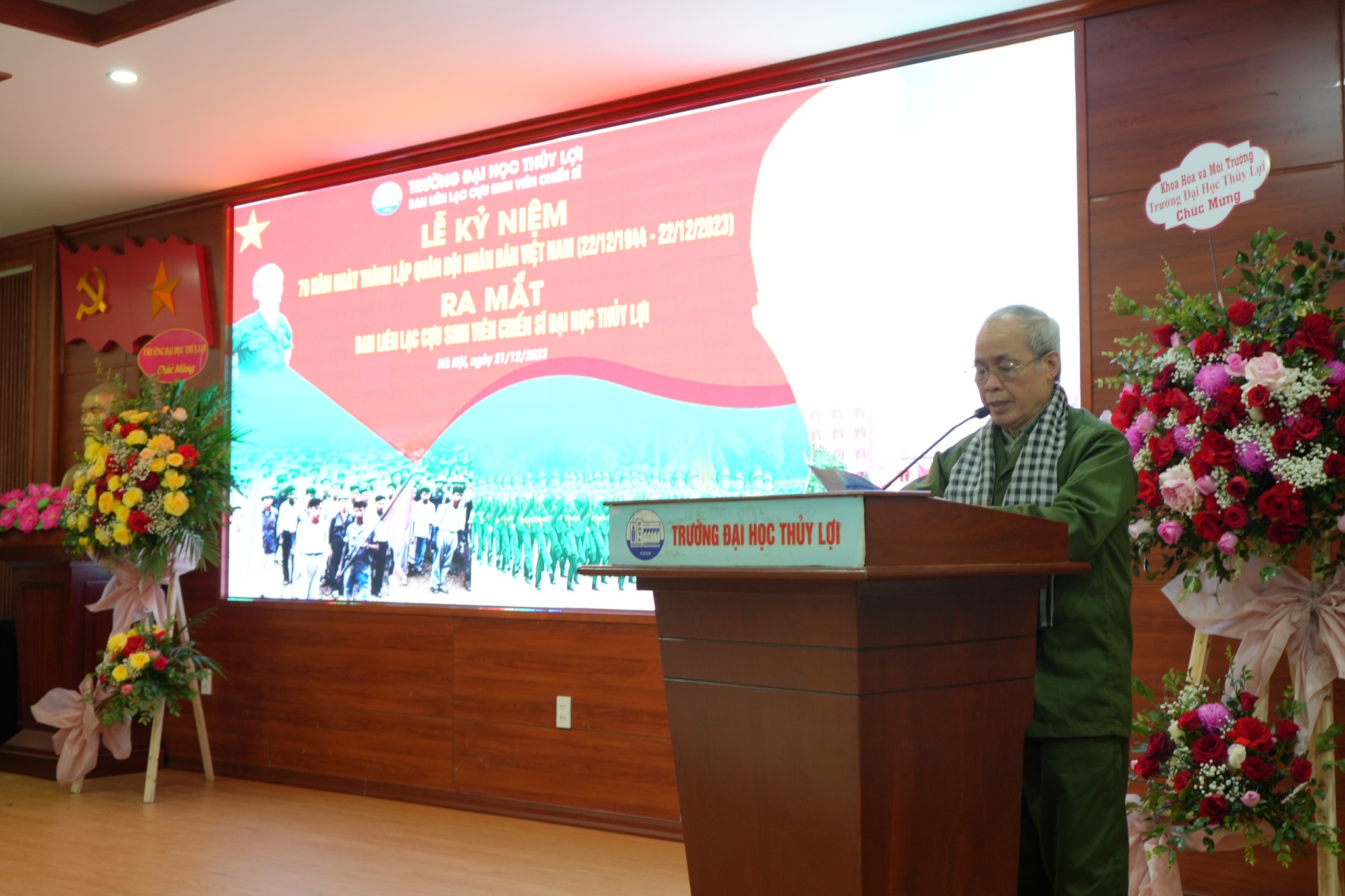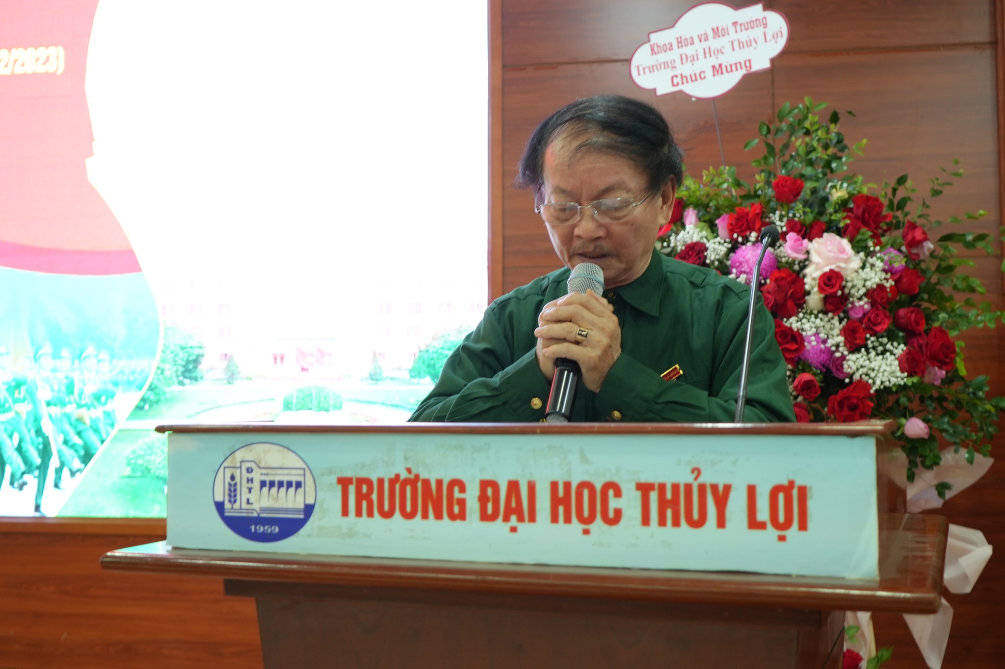 Thay mặt cựu sinh viên chiến sĩ Đại học Thủy Lợi, ông Vũ Trọng Hà, Nguyên Vụ trưởng Vụ tổ chức cán bộ, Bộ Nông nghiệp và Phát triển nông thôn đã ôn lại truyền thống vẻ vang của sinh viên Đại học Thủy Lợi hăng hái xung phong lên đường nhập ngũ. Theo thống kê của nhà trường, từ năm 1965-1975, đã có khoảng 700 sinh viên gác lại hoài bão của tuổi trẻ hăng hái xếp bút nghiên lên đường nhập ngũ với lời thề “quyết tử cho Tổ quốc quyết sinh”.