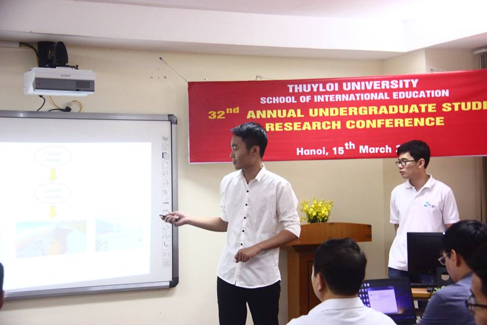 Ngoài ra có một nhóm sinh viên trẻ năm thứ 3 gồm Nguyễn Công Minh, Nguyễn Nhật Minh và Quách Đại Nam (lớp 58NKN) dưới sự hướng dẫn của PGS.TS. Nguyễn Mai Đăng (Trung tâm Đào tạo Quốc tế) đã nghiên cứu “Ảnh hưởng của biến đổi khí hậu và nước biển dâng đối với cư dân các xã ven biển huyện Giao Thủy – Nam Định”. Nghiên cứu đã sử dụng phương pháp thống kê để xác định xu thế thay đổi một số yếu tố khí tượng thủy văn; thực hiện các cuộc điều tra, khảo sát thực địa, phỏng vấn bảng câu hỏi các hộ gia đình để đánh giá nhận thức của cộng đồng về biến đổi khí hậu, tác động của chúng và cách ứng phó của người dân địa phương. Báo cáo cũng trình bày một số giải pháp công trình và phi công trình mà chính quyền và nhân dân khu vực nghiên cứu đang triển khai áp dụng. Đồng thời khuyến cáo thêm một số giải pháp nên học tập ở các nước khác trên thế giới.