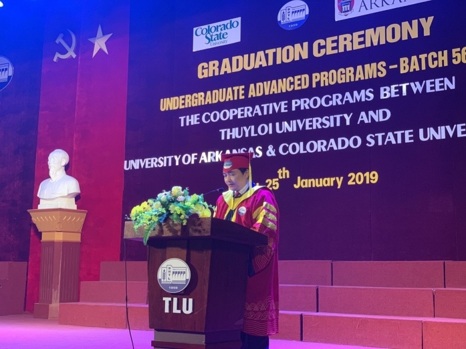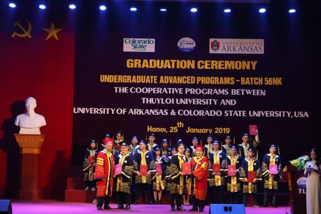 Tại buổi lễ, đại diện Trung tâm Đào tạo quốc tế đã trình bày báo cáo tổng kết toàn khóa 56 CTTT đồng thời công bố quyết định tốt nghiệp và khen thưởng cho những sinh viên có nhiều thành tích trong học tập. Theo đó, tỷ lệ sinh viên tốt nghiệp và đạt kết quả về học tập và rèn luyện cao, các hoạt động ngoại khóa được tổ chức và được sinh viên tham gia nhiệt tình. Về xếp loại tốt nghiệp: 2 sinh viên Xuất sắc, 4 sinh viên Giỏi, 14 Khá, và 52 sinh viên TB khá và TB. Về trình độ tiếng Anh: 100% sinh viên đạt IELTS 5.5 trở lên; trong đó có một số SV đạt IELTS 8.0, 7.0, và 6.5. Đặc biệt năm nay đã có 1 nhóm đạt Giải 3 tại cuộc thi Quốc tế về "Thiết kế đô thị trên các công cụ mô phỏng" được tổ chức ở Nhật Bản (FORUM 8).