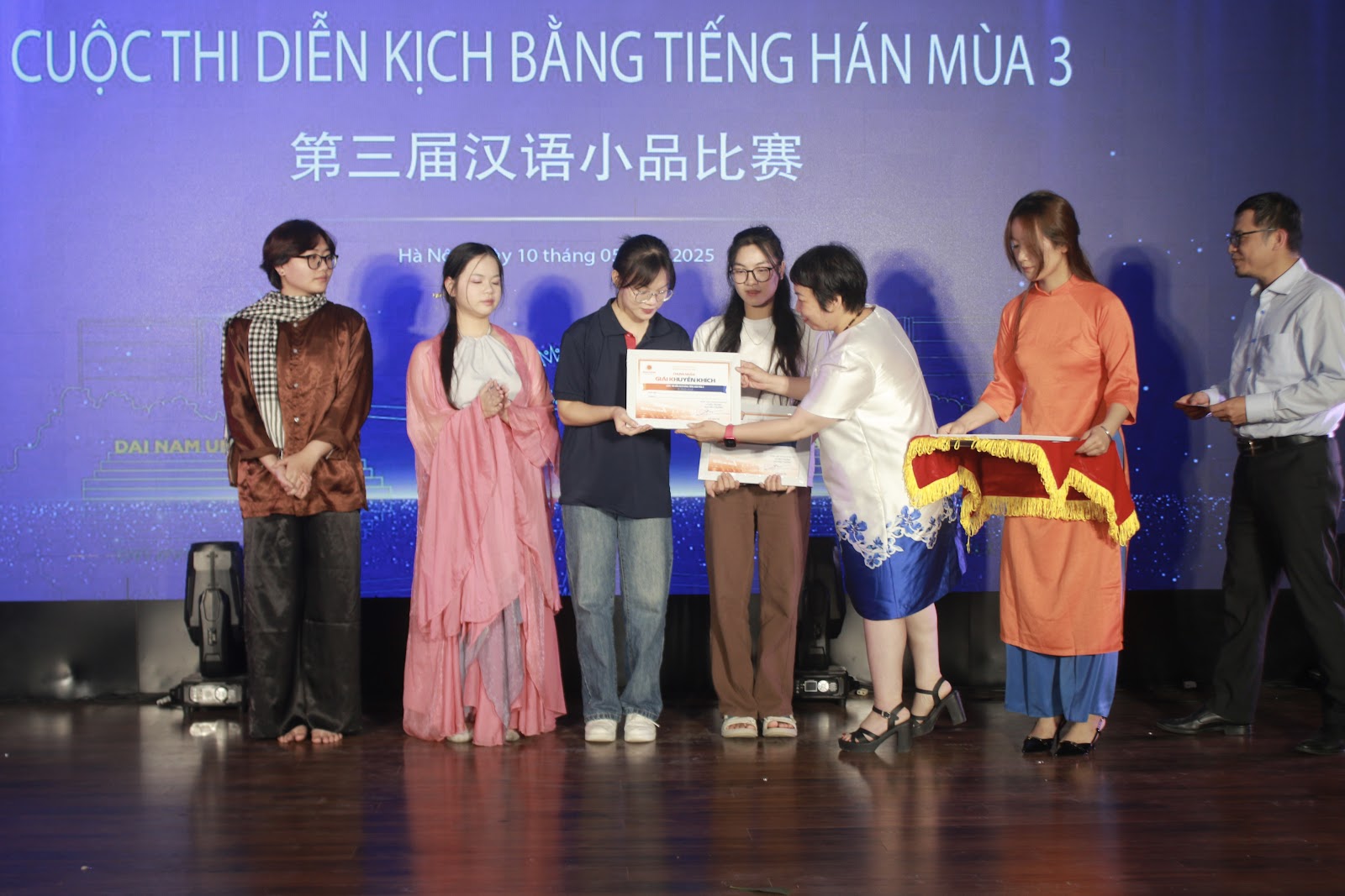 Cuộc thi thu hút hàng trăm sinh viên đến từ 10 trường đại học: Trường Đại học Thủy lợi, Trường Đại học Ngoại ngữ – Đại học Quốc gia Hà Nội, Trường Đại học Ngoại Thương, Trường Ngoại ngữ và Du lịch – Đại học Công Nghiệp, Học viện Khoa học Quân sự, Đại học Phenikaa, Trường Đại học Thăng Long, Trường Đại học Thương Mại, Trường Đại học Thủ Đô… Tham dự cuộc thi lần này, đội thi của Trường Đại học Thủy Lợi với 10 thành viên đến từ ngành Ngôn ngữ Trung Quốc (Trung tâm Đào tạo Quốc tế) đã mang đến không khí sôi động, trẻ trung và đầy sáng tạo với vở kịch “Hoa Mộc Lan”.