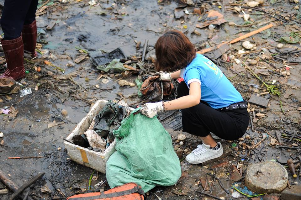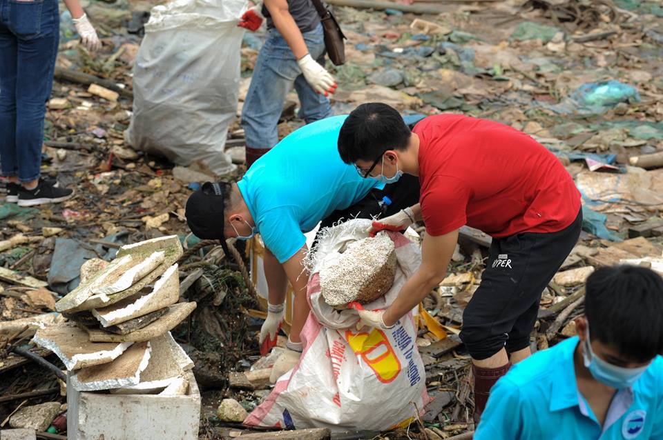 Hàng trăm sinh viên Trường Đại học Thủy lợi bắt tay vào việc thu dọn rác