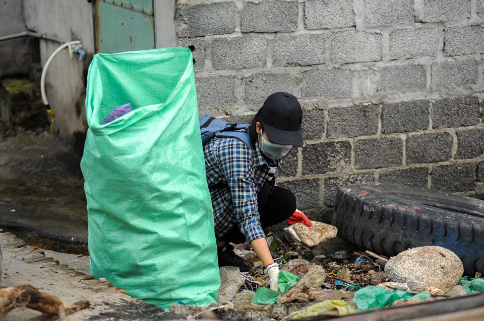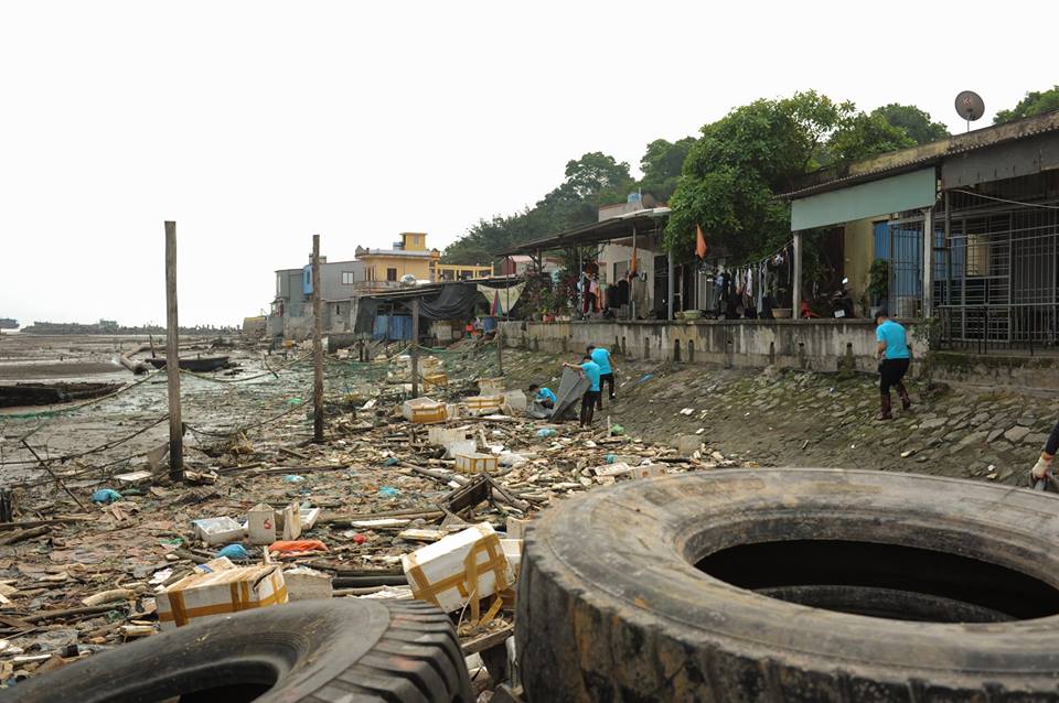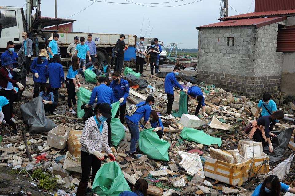 Sinh viên Trường Đại học Thủy lợi thu gom rác tại Cảng cá Ngọc Hải, Hải Phòng