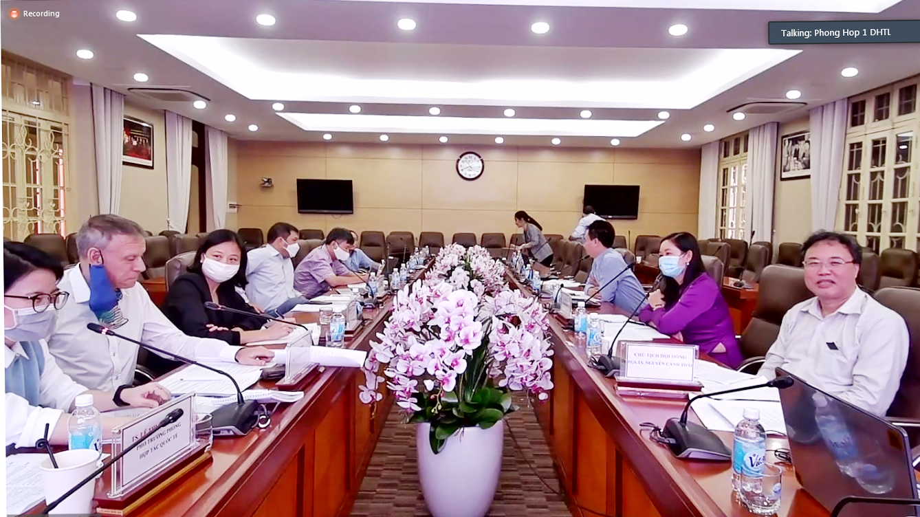 Các thành viên hội đồng lắng nghe và góp ý cho các đề tài dự thi
