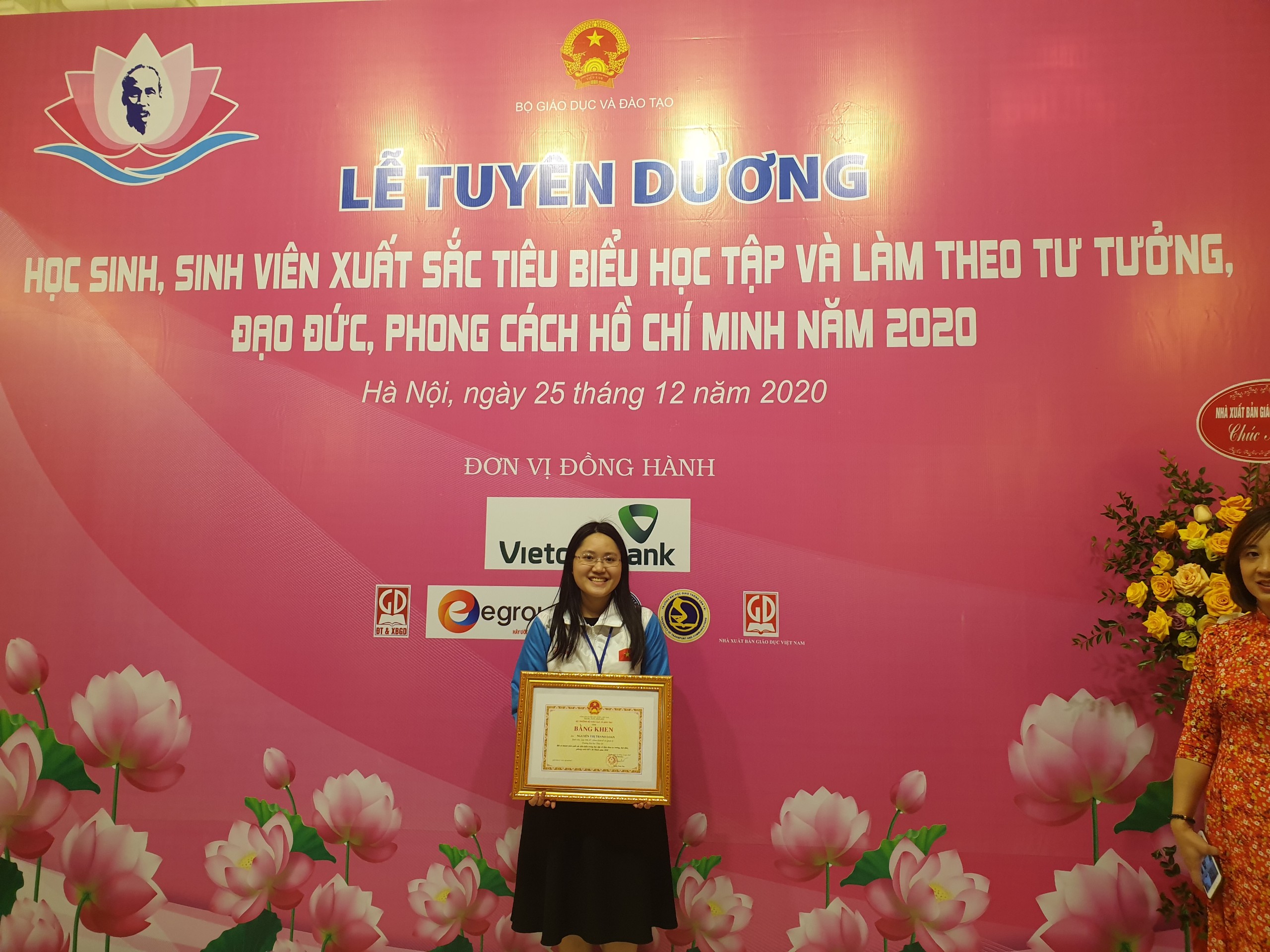 Buổi lễ hôm nay đã tuyên dương 130 học sinh, sinh viên xuất sắc tiêu biểu học tập và làm theo tư tưởng, đạo đức, phong cách Hồ Chí Minh năm 2020. Trong đó, có 51 học sinh từ các Sở Giáo dục và Đào tạo địa phương; 76 sinh viên thuộc các trường đại học trên cả nước và 3 sinh viên đến từ các trường cao đẳng, trung cấp sư phạm. Trường Đại học Thủy lợi có sinh viên Nguyễn Thị Thanh Loan – lớp 59K-PT, Khoa Kinh tế và Quản lý được vinh dự có mặt trong lễ tuyên dương.