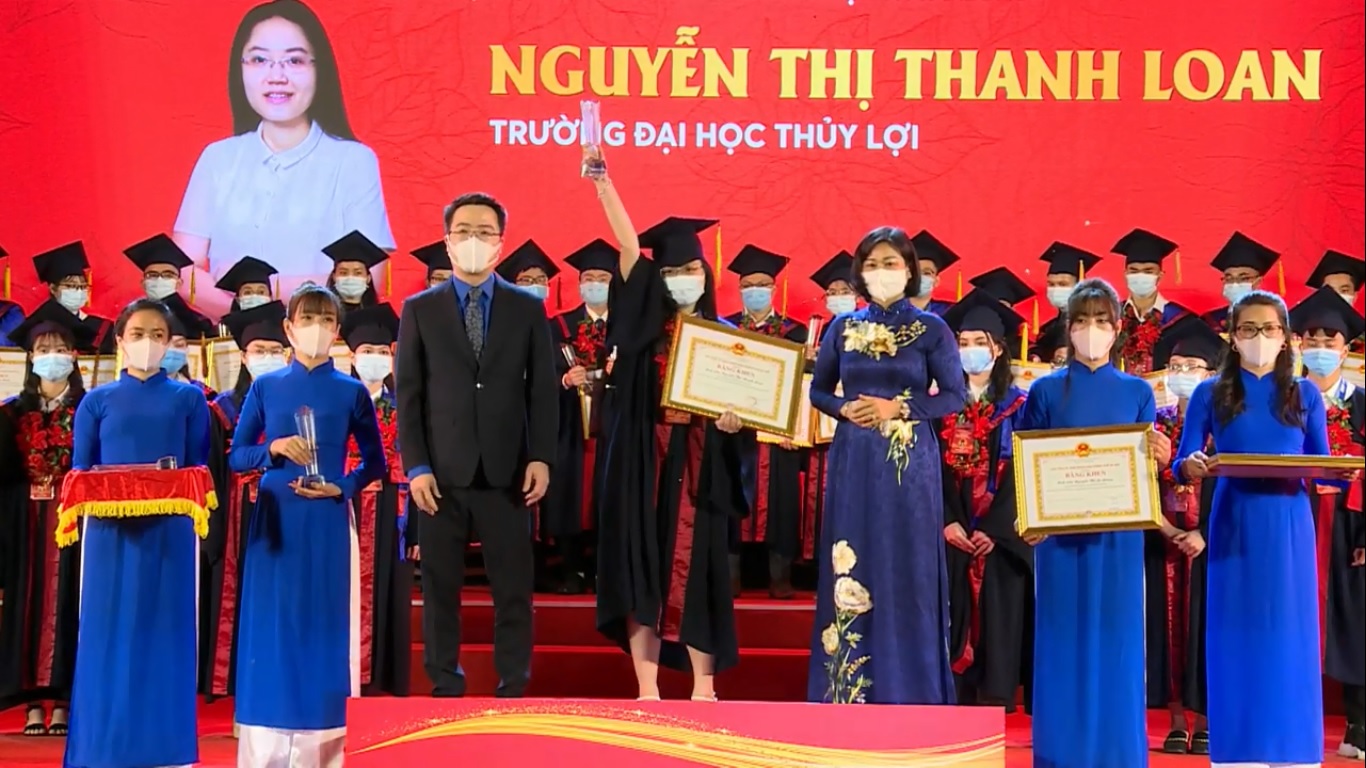 Trong 90 thủ khoa tiêu biểu được tuyên dương năm 2021, Trường Đại học Thủy lợi có sinh viên Nguyễn Thị Thanh Loan lớp 59K-PT, ngành Kinh tế, khoa Kinh tế và Quản lý được vinh danh. Loan được xét thủ khoa tốt nghiệp loại xuất sắc với điểm trung bình học tập là 3,83 (thang điểm 4).