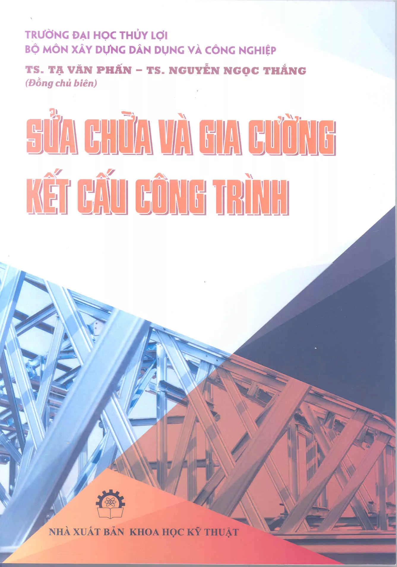 Tên sách: Sửa chữa và gia cường kết cấu công trình Tác giả: TS. Tạ Văn Phấn và TS. Nguyễn Ngọc Thắng (Đồng chủ biên) Nhà xuất bản: Khoa học kỹ thuật Năm xuất bản: 2020. Cuốn sách bổ sung những kiến thức cần thiết về các dạng hư hỏng thường gặp trong kết cấu công trình, đánh giá tính chất và mức độ hư hỏng của công trình, công tác khảo sát phục vụ sửa chữa và gia cường kết cấu, gia cường kết cấu bê tông cốt thép và kết cấu gạch đá, sửa chữa kết cấu bê...