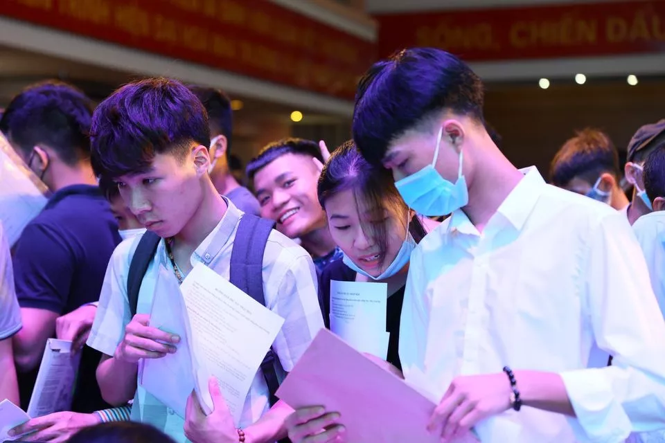 Hàng trăm tân sinh viên đến nhập học trong ngày đầu làm thủ tục cho...