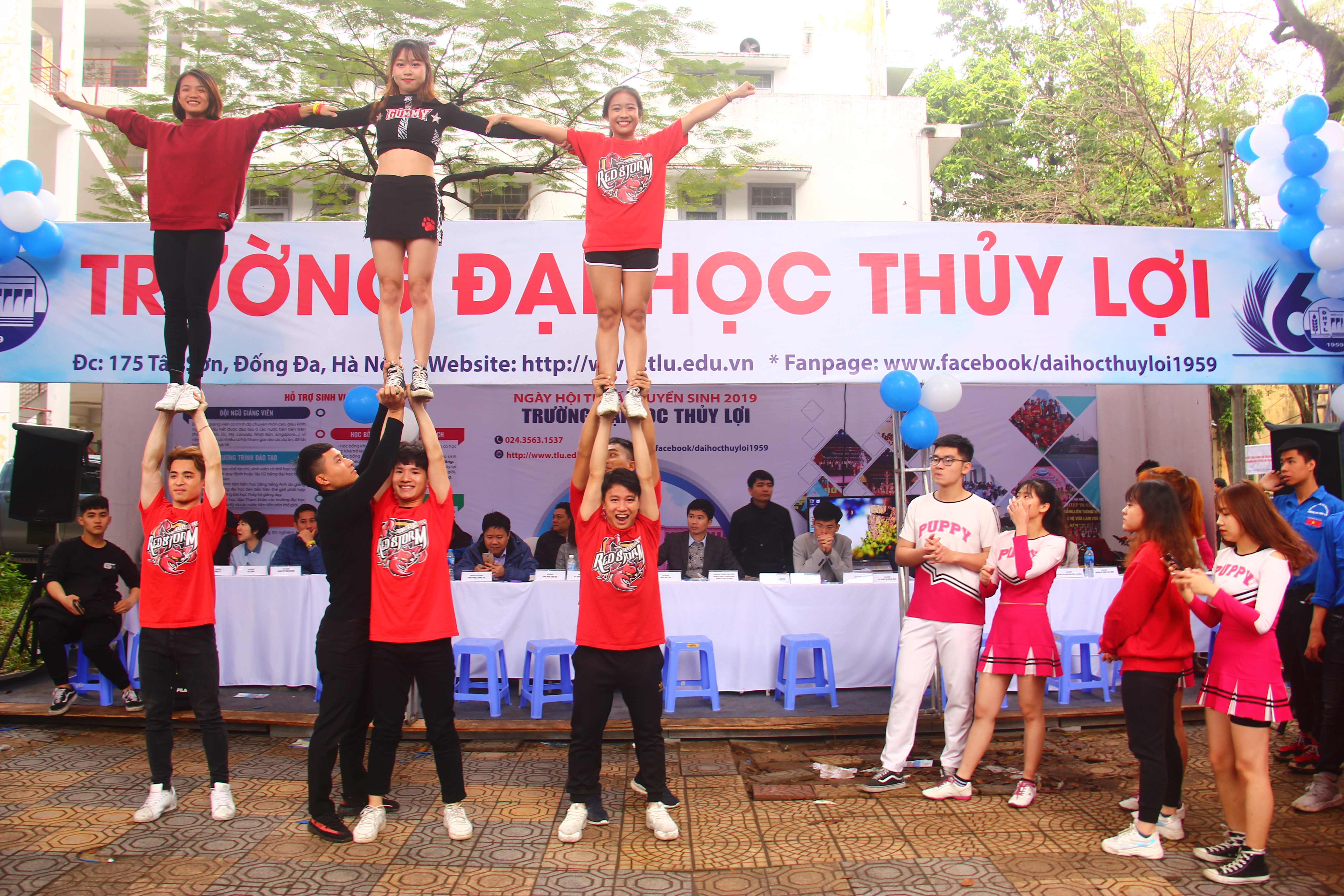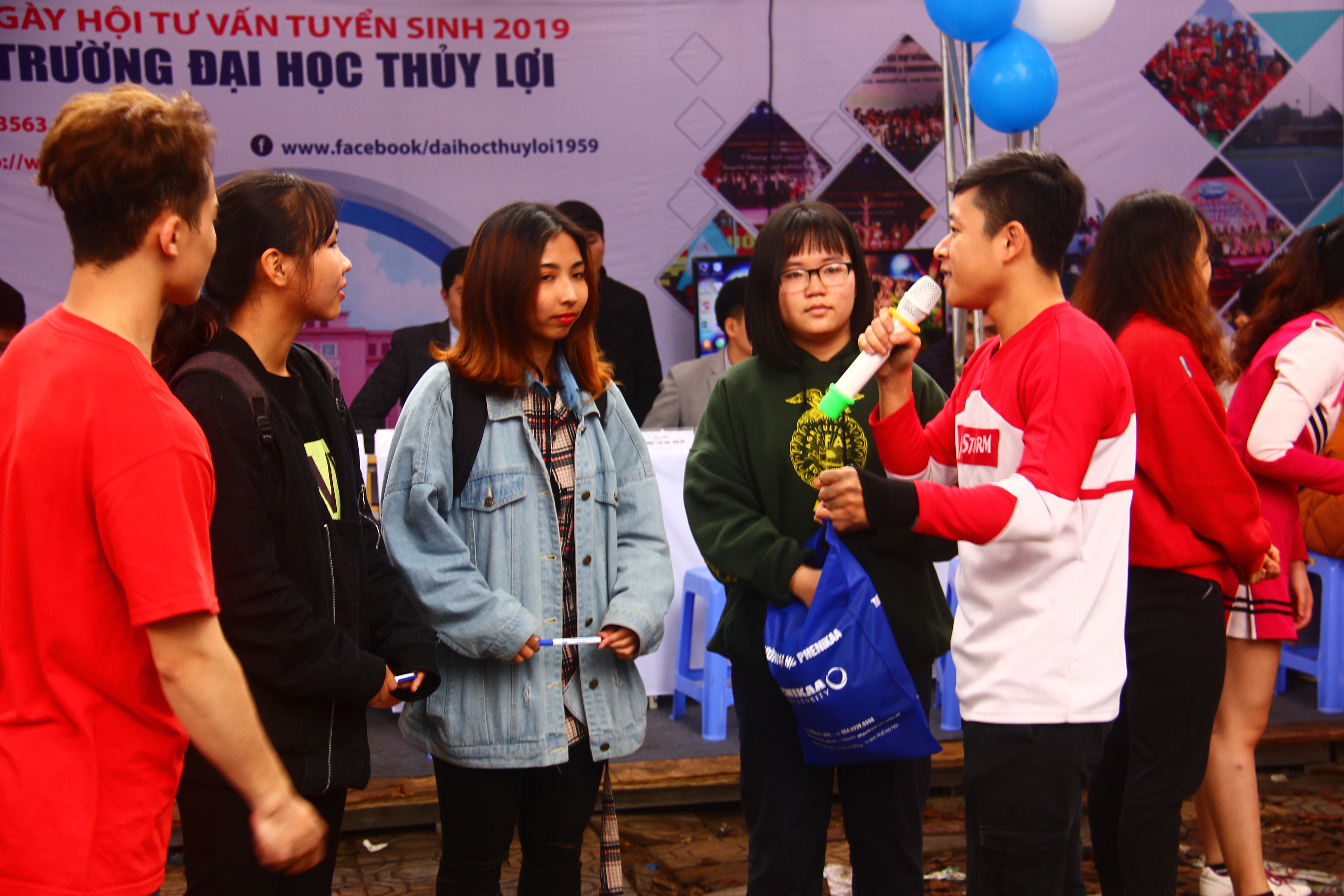 Bên lề các hoạt động tư vấn hướng nghiệp, năm nay, gian hàng của Trường Đại học Thủy lợi sôi động hơn với các hoạt động giao lưu văn hóa, văn nghệ thu hút đông đảo em học sinh thông qua các trò chơi trải nghiệm, trả lời câu hỏi về Trường và nhận quà có logo của Trường.