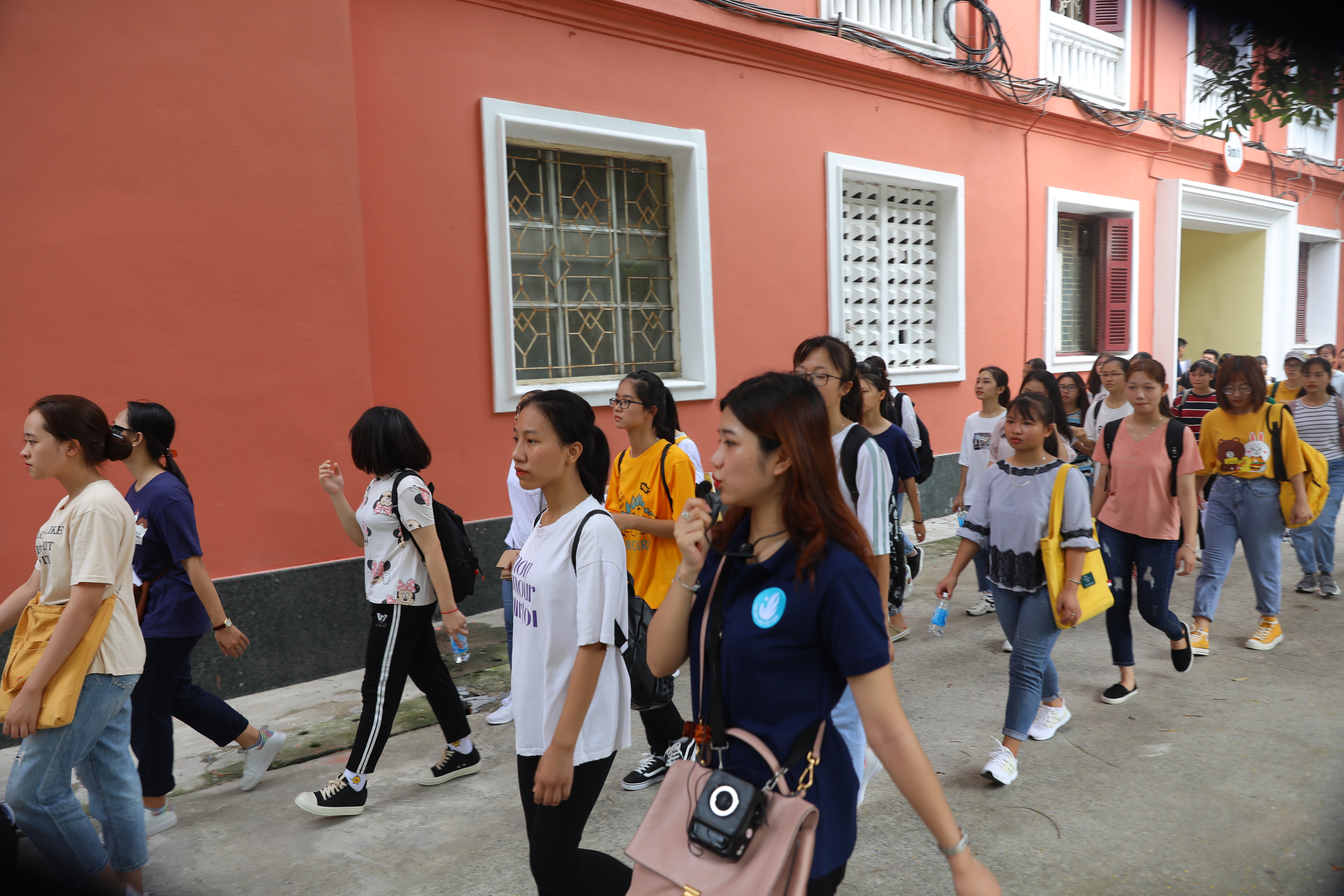 Tình nguyện viên hướng dẫn tân sinh viên tham quan các địa điểm trong trường