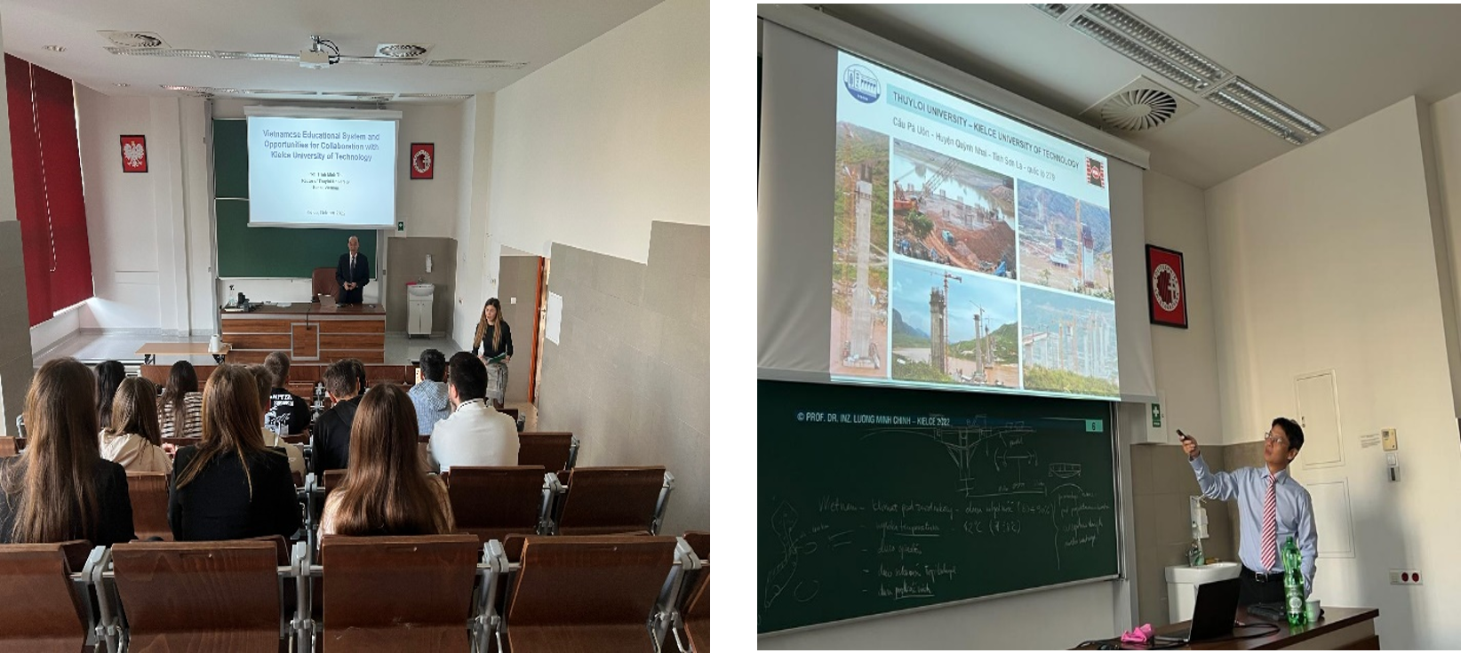 Trong chương trình làm việc, các thành viên đoàn công tác đã tham gia các phiên giảng bài cho sinh viên Đại học Bách Khoa Kielce về văn hóa, hệ thống giáo dục, quản lý tài nguyên nước và công nghệ kỹ thuật dân dụng ở Việt Nam.