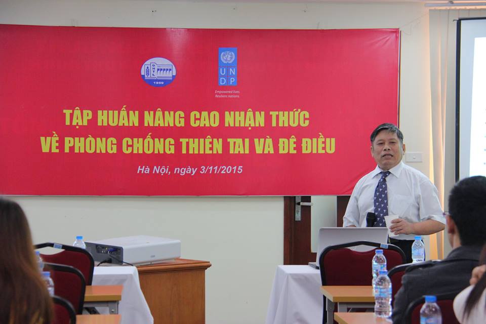 Tham gia buổi tập huấn có sự góp mặt của ông Nguyễn Đức Quang – Phó cục trưởng phòng tránh thiên tai; Ông Đặng Quang Minh – Giám đốc trung tâm DMC (trung tâm phòng tránh và giảm nhẹ thiên tai trực thuộc Tổng cục Thủy lợi), các cố vấn – chuyên gia trung tâm DMC cùng đông sinh viên của trường ĐH Thủy Lợi đến tham dự.