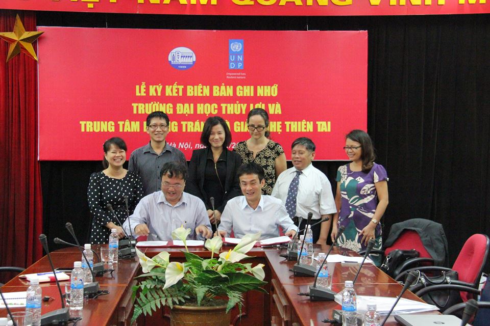 Sự kiện song hành với buổi tập huấn là Lễ ký biên bản ghi nhớ giữa trường Đại học Thủy Lợi với Trung tâm Phòng tránh và Giảm nhẹ thiên tai thuộc Tổng cục Thủy Lợi, Bộ NN và PTNT. Biên bản ghi nhớ với mục đích nhằm thúc đẩy giao lưu hai chiều giữa trường ĐH Thủy Lợi và Trung tâm phòng chống thiên tai. PGS.TS. Nguyễn Cảnh Thái – Phó hiệu trưởng Nhà trường và đại diện trung tâm DMC cùng kí biên bản ghi nhớ.