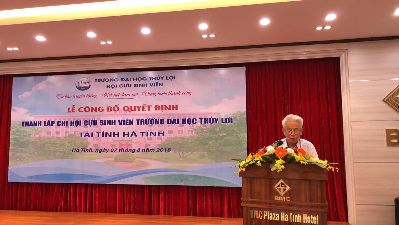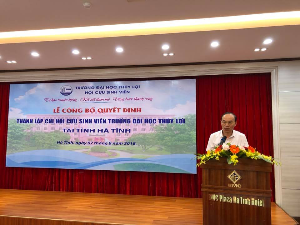 Với chủ đề “Tự hào truyền thống – Kết nối đam mê – Vững bước thành công” đại hội hội cựu sinh viên Trường Đại học Thủy lợi lần thứ nhất, nhiệm kỳ 2018-2023 diễn ra vào chiều ngày 30/6/2018 đã diễn ra thành công tốt đẹp. Ngay sau sự kiện này, Hội cựu sinh viên sẽ tiến hành thành lập các chi bộ của hội ở khắp các địa phương trên cả nước nhằm lan tỏa hình ảnh của đông đảo các thế hệ sinh viên Trường Đại học Thủy lợi. Địa điểm khởi đầu cho hoạt động này là tỉnh Hà Tĩnh, diễn ra ngay 7/8/2018.