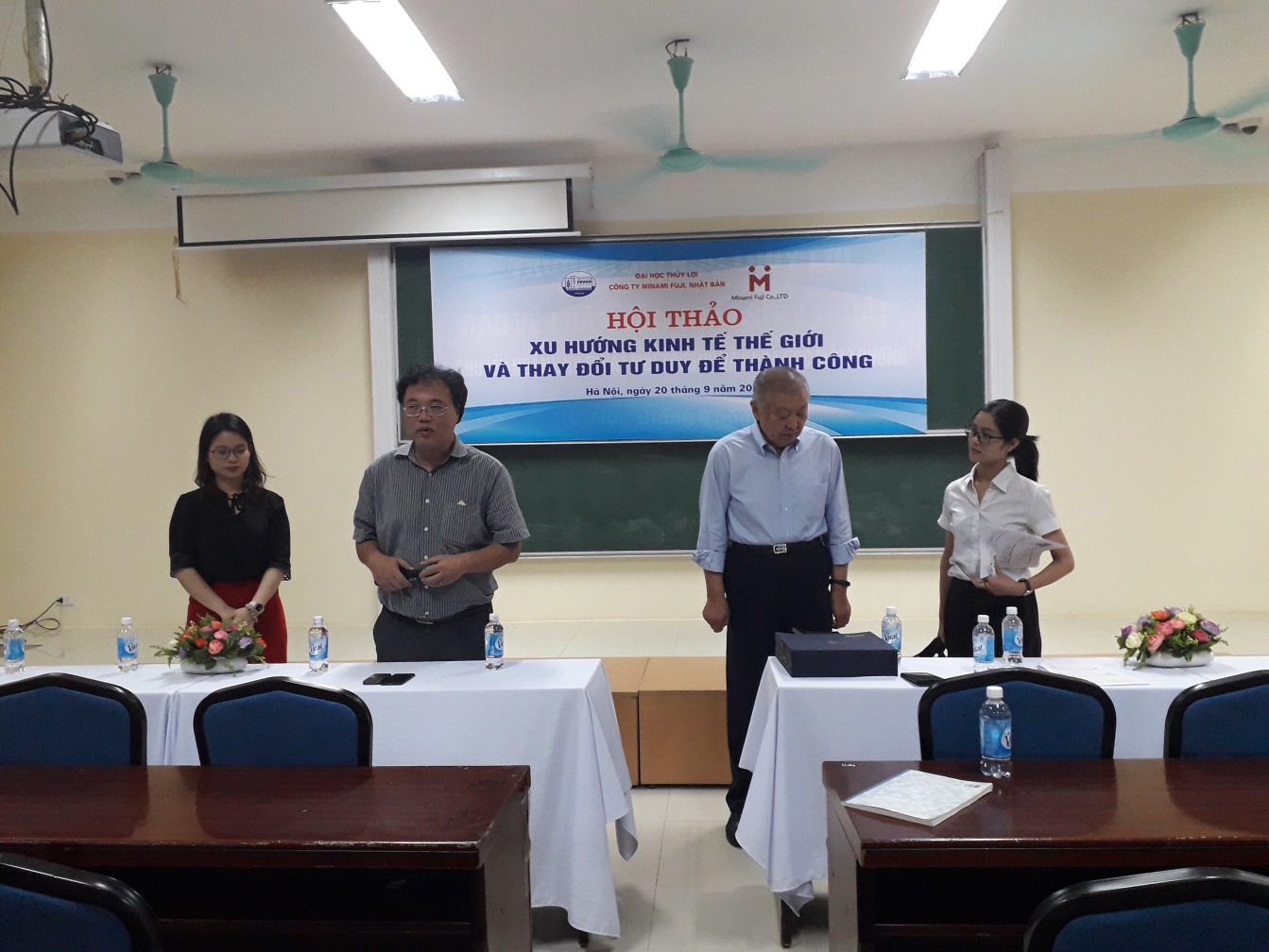 Dựa trên mối quan hệ hợp tác hiệu quả đó, nhận lời mời của lãnh đạo Trường Đại học Thủy lợi, ngày 20/9/2018, Ông Sugiyama đã tổ chức một buổi nói chuyện với sinh viên và giảng viên của trường Đại học Thủy lợi với chủ đề “Xu hướng kinh tế thế giới và thay đổi tư duy để thành công”. Buổi nói chuyện có sự tham dự của PGS.TS. Nguyễn Cảnh Thái, Phó Hiệu trưởng Nhà trường cùng gần 100 giảng viên và sinh viên Khoa Kinh tế và Quản lý của ĐHTL.
