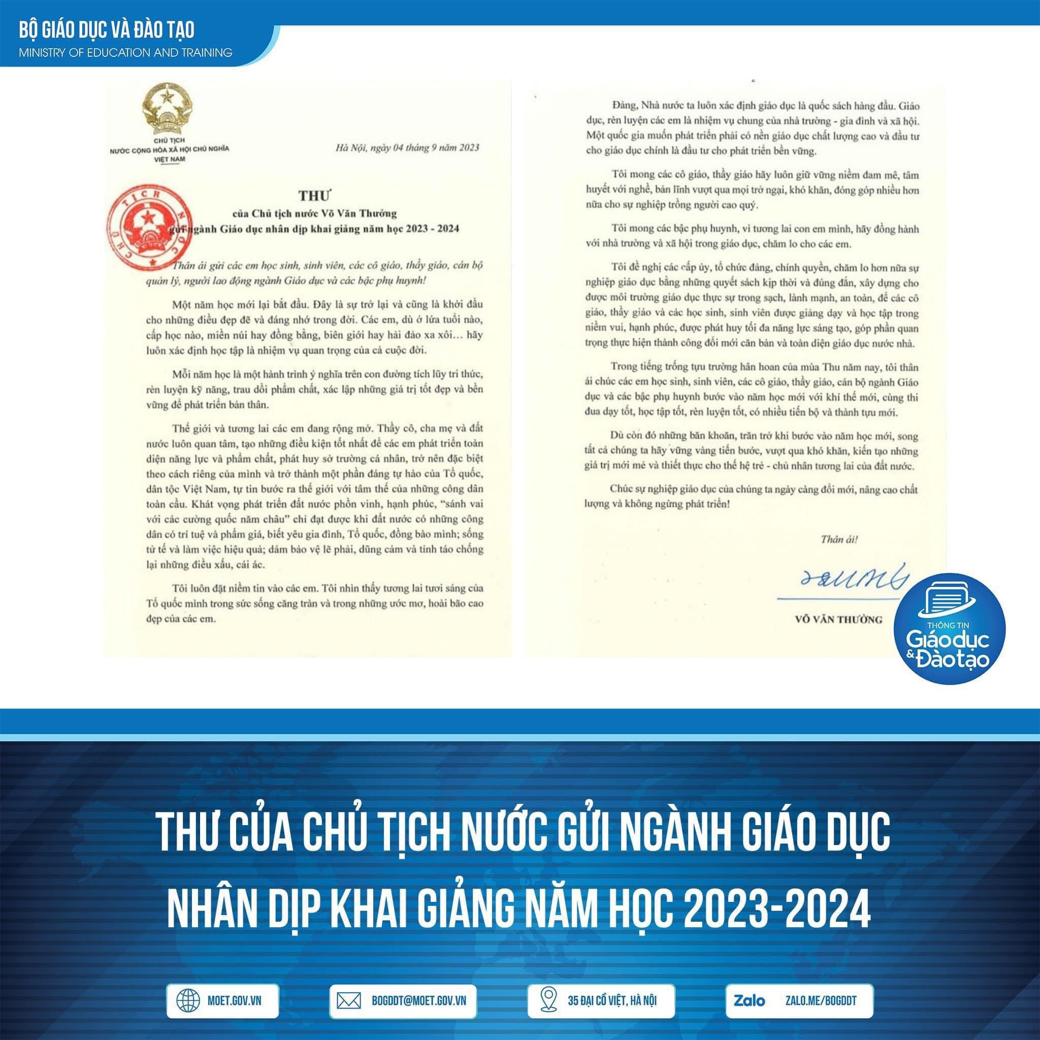 Thư của Chủ tịch nước Võ Văn Thưởng gửi ngành Giáo dục nhân dịp khai giảng năm học mới 2023-2024