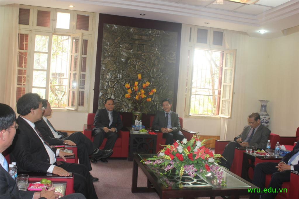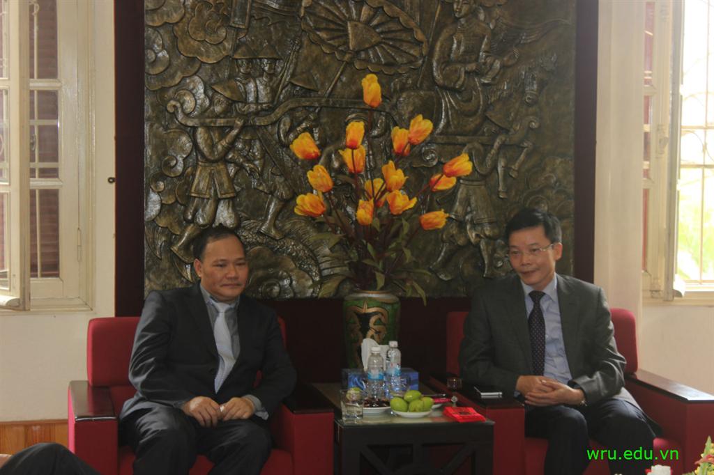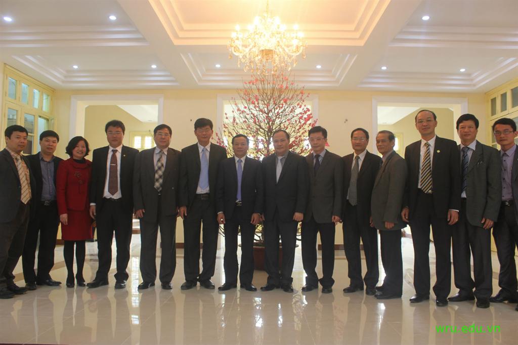 Đáp lại sự quan tâm của lãnh đạo Bộ NN & PTNT, thay mặt lãnh đạo nhà trường GS.TS Nguyễn Quang Kim – Bí thư Đảng ủy, Hiệu trưởng nhà trường đã báo cáo sơ nét những việc đã thực hiện trong năm 2013 cũng như những kế hoạch sắp tới của nhà trường. Nhân chuyến thăm của Thứ trưởng, thầy Hiệu trưởng cũng đã có những trao đổi cụ thể về các công việc gắn với sự phát triển chung của nhà trường, của Bộ NN & PTNT đặc biệt là những việc “nóng” của ngành, trường sẽ chủ động thành lập các tổ chuyên gia xem xét đánh giá để có những ý kiến tham vấn với Bộ một cách độc lập, về lĩnh vực đào tạo trường Đại học Thủy Lợi sẽ chủ trương chủ động hội nhập quốc tế như cấp học bổng cho sinh viên một số nước phát triển trong khu vực đến học tập tại trường, trong năm 2014 sẽ có hội nghị quốc tế về Thủy văn – Môi trường rất lớn sẽ được tổ chức….Đầu xuân năm mới, GS Nguyễn Quang Kim thay mặt nhà trường gửi tới lãnh đạo bộ và gia đình năm mới dồi dào sức khỏe, an khanh thịnh vượng.