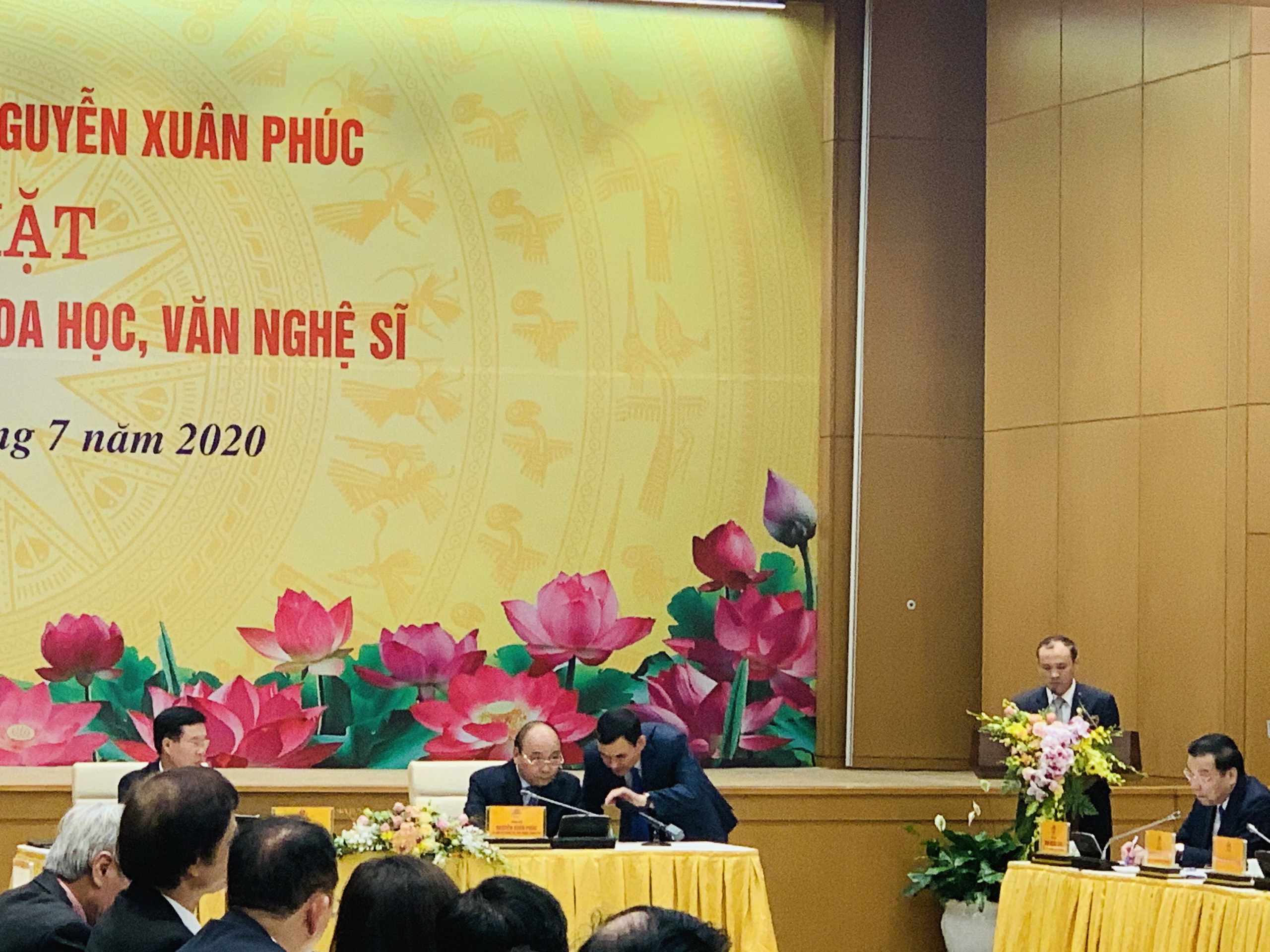Cùng dự có Ủy viên Bộ Chính trị, Bí thư Trung ương Đảng, Trưởng Ban Tuyên giáo Trung ương Võ Văn Thưởng, lãnh đạo một số bộ, ngành. Phát biểu tại buổi gặp mặt, Thủ tướng Nguyễn Xuân Phúc mong muốn ngành tuyên giáo, đội ngũ trí thức, nhà khoa học, văn nghệ sĩ chung tay gánh vác để một dân tộc có bề dày hơn 4.000 năm lịch sử văn hiến, một dân tộc sinh ra nhiều bậc hiền tài, danh nhân văn hóa phải là dân tộc mạnh, quyết không để thế giới coi thường như một dân tộc bạc nhược, quyết không thể là dân tộc nghèo.