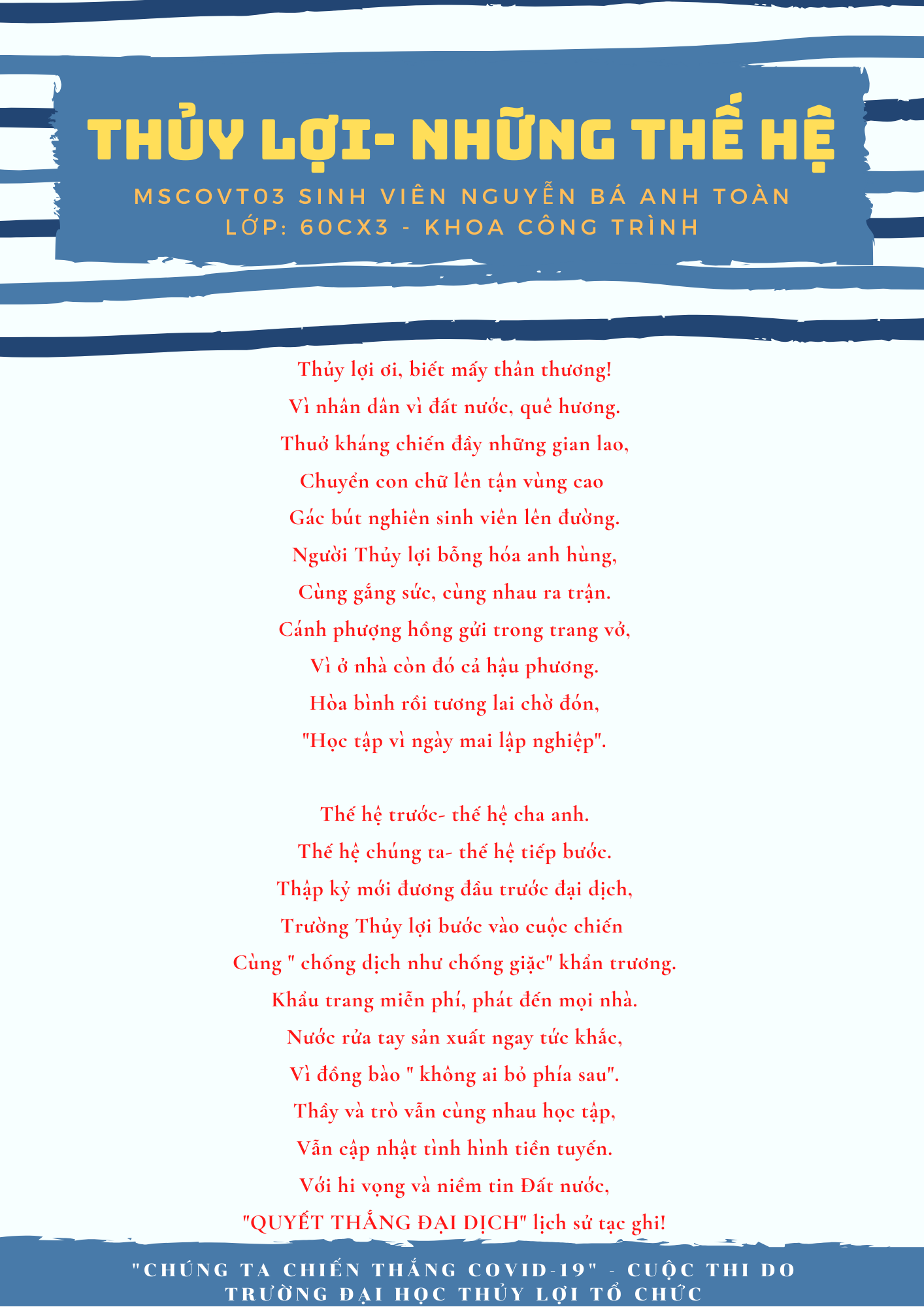 Mã số COVT03 – Sinh viên Nguyễn Bá Anh Toàn – lớp 60CX Khoa Công trình
