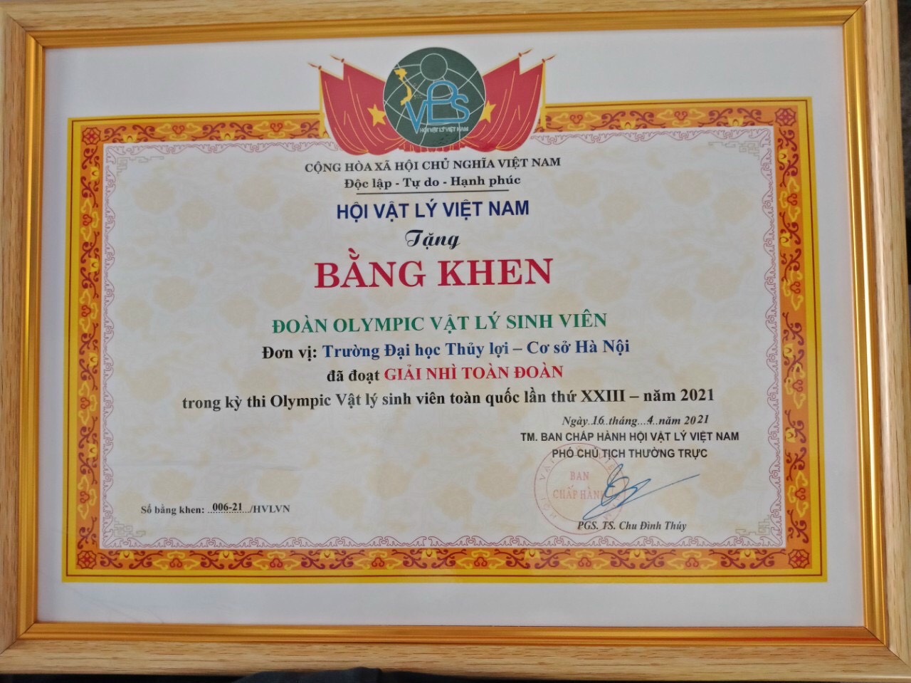 Trước đó, năm 2019, với vai trò là đơn vị đăng cai tổ chức kỳ thi, Trường Đại học Thủy lợi đã vinh dự nhận giấy khen của Hội Vật lý, giấy khen của Liên hiệp các hội khoa học và kỹ thuật Việt Nam vì có thành tích xuất sắc trong công tác tổ chức kỳ thi.