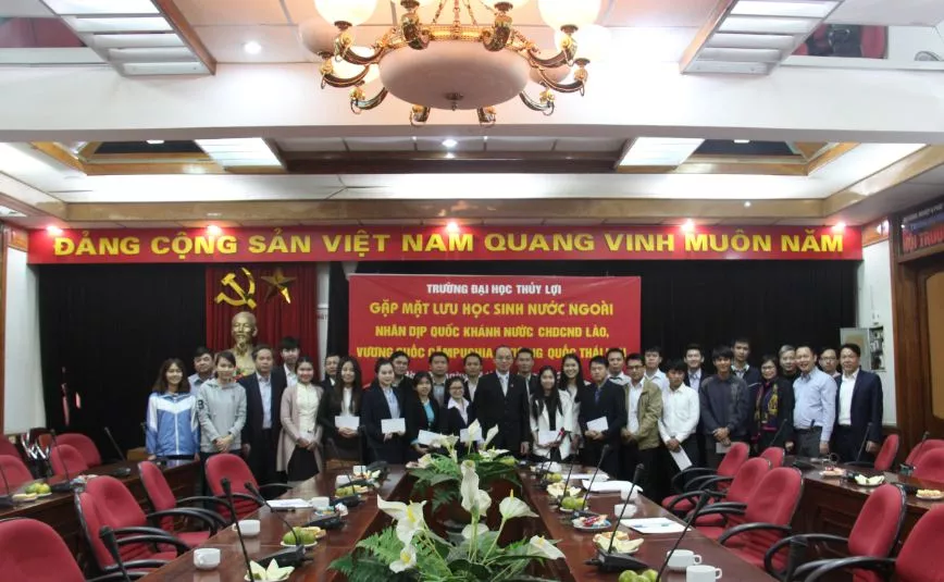 Tham dự buổi gặp mặt có GS. TS Trịnh Minh Thụ – Phó bí thư Đảng ủy – Phó hiệu trưởng Nhà trường; đại diện các Phòng, Khoa, Ban, Trung tâm cùng các bạn lưu học sinh các nước Lào, Campuchia, Thái Lan… đang học tập tại trường. Tại buổi gặp mặt, các đại biểu đã nghe giới thiệu về Ngày Quốc khánh của các nước Lào, Campuchia và Thái Lan. Trong những năm qua, Trường Đại học Thủy lợi đã tiếp nhận nhiều sinh viên từ các nước đến du học và học tập theo diện trao đổi...
