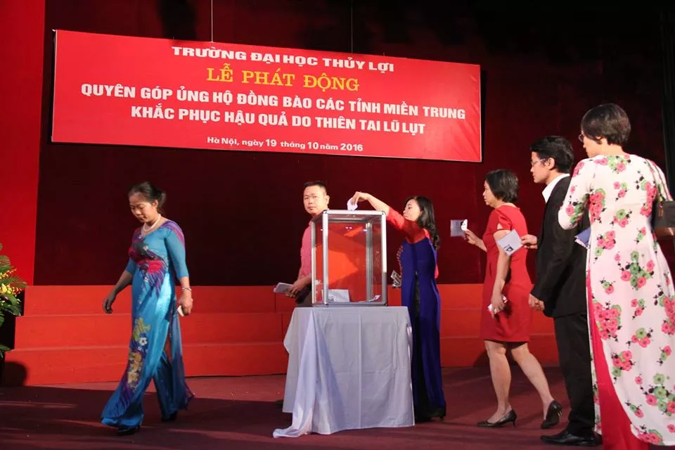 Cán bộ, giảng viên và sinh viên trong trường đến với buổi lễ phát động Mở đầu buổi lễ, đại diện Phòng Công tác chính trị và Quản lý sinh viên khái quát về tình hình bão lũ cũng như những thiệt hại gây ra cho nhân dân các tỉnh Miền Trung từ Nghệ An đến Thừa Thiên Huế, thiên tai gây thiệt hại nặng nề về người và của, khiến cho đời sống nhân dân gặp rất nhiều khó khăn. Với tinh thần tương thân, tương ái, chung tay cùng đồng bào cả nước hỗ trợ đồng bào...