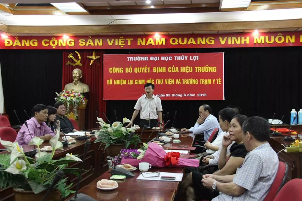 Ngày 03/06/2015, tại hội trường 223 nhà A1 trường Đại học Thủy lợi đã diễn ra buổi công bố Quyết định bổ nhiệm lại chức vụ Giám đốc Thư viện cho ThS Nguyễn Thị Phương Trà và bổ nhiệm lại chức vụ Trưởng Trạm Y tế cho bác sỹ Phạm Văn Phong. Tham dự có GS.TS Nguyễn Quang Kim – Bí thư Đảng ủy, Hiệu trưởng nhà trường, GS.TS.Trịnh Minh Thụ – Phó hiệu trưởng nhà trường, GS.TS Dương Thanh Lượng- Chủ tịch Hội đồng trường, PGS.TS.Lê Xuân Roanh – Chủ tịch Công đoàn trường cùng các đồng chí đại...