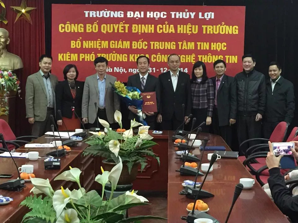 Sáng nay 31/12/2014, tại hội trường 223 nhà A1 trường Đại học Thủy Lợi đã long trọng tổ chức buổi công bố Quyết định bổ nhiệm Giám đốc Trung tâm tin học kiêm phó trưởng khoa Công nghệ thông tin. Tham dự có GS.TS Nguyễn Quang Kim – Bí thư Đảng ủy, Hiệu trưởng Nhà trường, PGS.TS Lê Xuân Roanh – Chủ tịch Công đoàn trường cùng đại diện các phòng khoa ban trong trường. ThS Phạm Thị Nguyệt Nga – Trưởng phòng Tổ chức cán bộ đọc quyết định bổ nhiệm cán bộ Mở đầu buổi lễ, ThS...