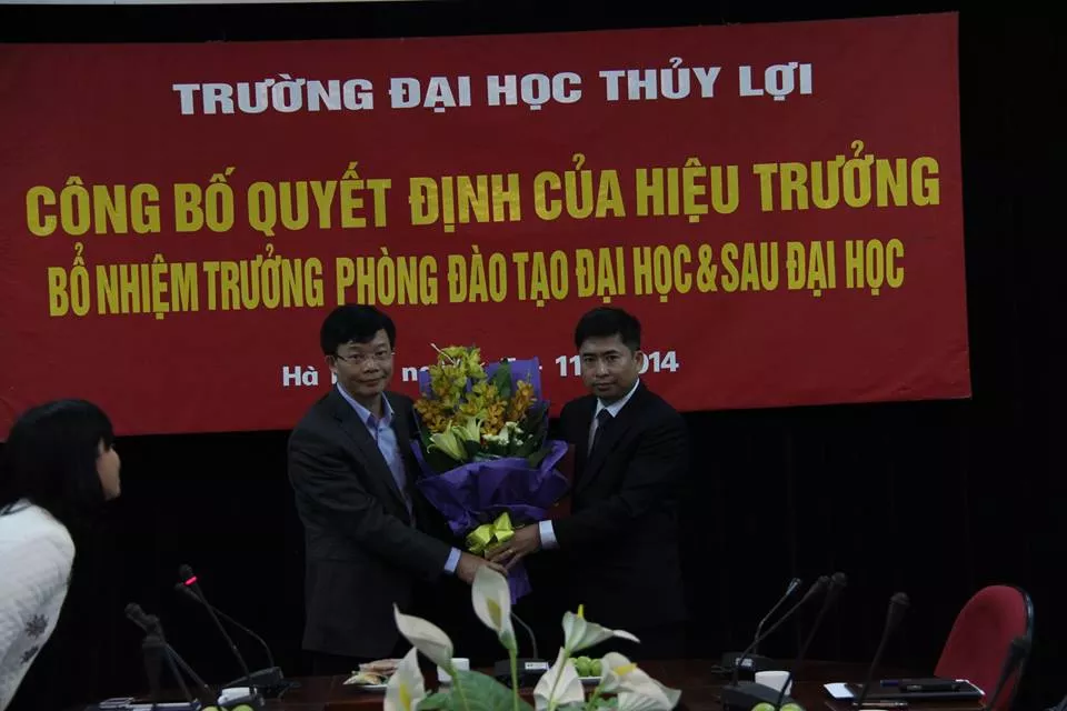 Ngày 05/11/2014, tại hội trường 223 nhà A1 trường Đại học Thủy Lợi đã long trọng tổ chức buổi công bố Quyết định bổ nhiệm Trưởng phòng Đào tạo đại học và Sau đại học cho PGS.TS Nguyễn Tuấn Anh, Viện trưởng Viện Kỹ thuật Tài nguyên nước kiêm Phó trưởng khoa Kỹ thuật Tài nguyên nước. Tham dự có GS.TS Nguyễn Quang Kim – Bí thư Đảng ủy, Hiệu trưởng nhà trường, các thầy trong Ban giám hiệu cùng đại diện cho các phòng khoa ban trong trường. Đại diện lãnh đạo Nhà trường, GS.TS Nguyễn Quang Kim...
