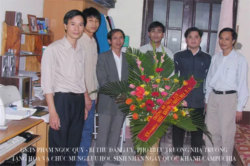 Nhân dịp Quốc khánh Cămpuchia, ngày 9 tháng 11 năm 2007, GS.TS Phạm Ngọc Quý – Bí thư Đảng ủy, Phó Hiệu trưởng Nhà trường đã đến tặng hoa và chúc mừng lưu học sinh Cămpuchia tại Nhà 4 – KTX Trường Đại học Thủy lợi. GS.TS Phạm Ngọc Quý – Bí thư Đảng ủy, Phó Hiệu trưởng Nhà trường tặng hoa và chúc mừng lưu học sinh nhân ngày Quốc khánh CampuchiaCho tới nay và trong những năm tháng sau này, Nhà trường luôn giành những ưu ái và sự quan tâm sâu sắc tới lưu học sinh đến từ các nước bạn, nhất...