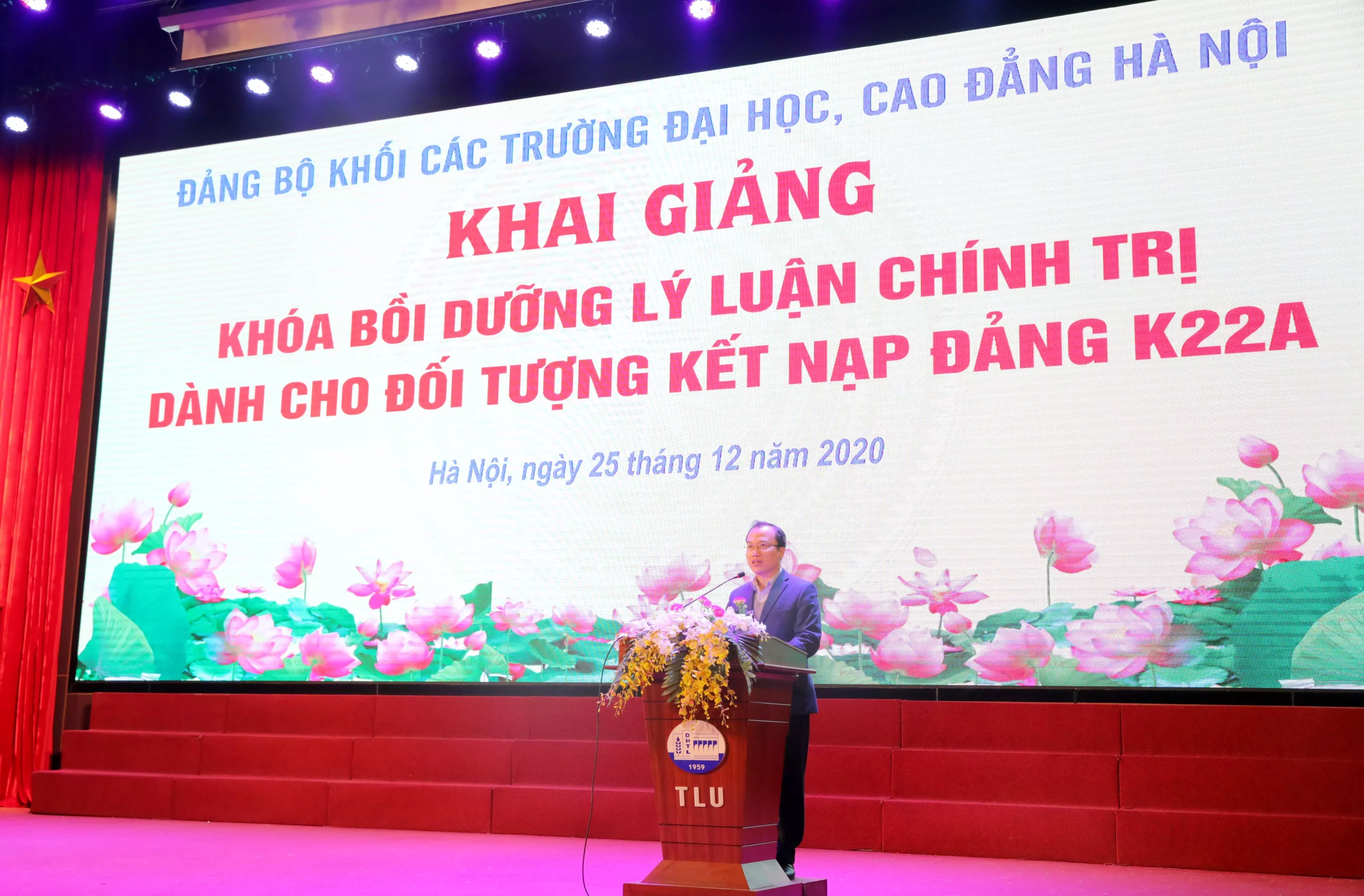 Sáng nay 25/12, tại Hội trường T45, Trường Đại học Thủy lợi tổ chức Khai giảng khóa bồi dưỡng lý luận chính trị dành cho đối tượng kết nạp Đảng – lớp K22A. Tham dự buổi lễ có PGS.TS. Nguyễn Ngọc Thắng – Ủy viên Ban thường vụ Đảng ủy – Chủ tịch Công đoàn Trường – Phó trưởng Khoa Công trình; đại diện Đảng ủy, Đoàn thanh niên và 267 quần chúng ưu tú là những cán bộ, giảng viên, sinh viên đến từ Đảng bộ Trường Đại học Thủy lợi, Trường Đại học Công nghệ và Quản lý...