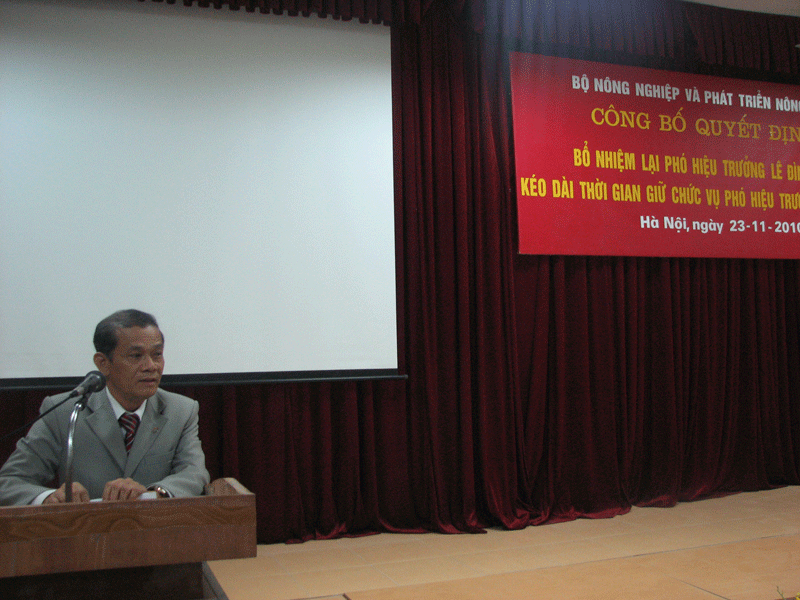 Sáng nay ngày 23/11/2010 tại phòng họp 228-A4, Bộ Nông nghiệp và phát triển nông thôn đã công bố Quyết định bổ nhiệm lại chức vụ Phó Hiệu trưởng Trường...