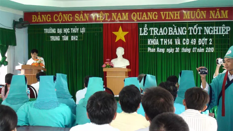 Hòa trong không khí cả nước đang hân hoan chào đón Đại lễ 1000 năm Thăng Long – Hà nội, sáng 30/07/2010 tại Trung Tâm ĐH2 đã long trọng tổ chức Lễ trao bằng tốt nghiệp cho sinh viên các lớp TH14C, TH14N và lớp NT1-49CĐ đợt 2. Tới dự lễ có Thầy PGS.TS Trịnh Minh Thụ – Phó Hiệu trưởng Trường Đại học Thủy Lợi, cùng các thầy: Thầy Văn Đình Khâu – Chủ nhiệm Khoa Tại chức; Thầy Nguyễn Ngọc Ánh – Phó trưởng Phòng Công tác chính trị & Quản lý sinh viên; các vị khách...