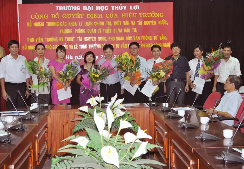 Chiều ngày 7/9/2010, Trường Đại học Thuỷ lợi tổ chức buổi lễ công bố Quyết định của Hiệu trưởng bổ nhiệm Trưởng Khoa Lý luận chính trị, Trưởng Khoa Thuỷ văn và Tài nguyên nước, Trưởng Phòng Quản lý thiết bị và đầu tư, Phó Giám đốc Văn phòng tư vấn, Phó Viện trưởng Viện Kỹ thuật Tài nguyên nước, bổ nhiệm lại Phó Giám đốc và kế toán trưởng Công ty Tư vấn và CGCN Trường Đại học Thuỷ lợi. Tham dự buổi lễ có đại diện Đảng uỷ, Ban Giám hiệu, Hội đồng trường, Công đoàn trường…và các...
