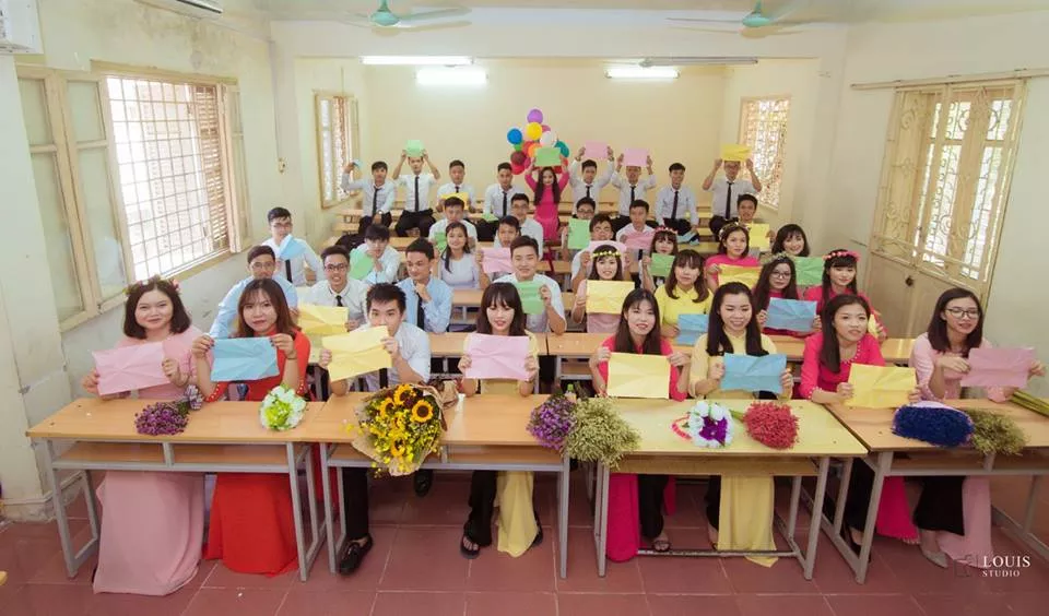 Tập thể lớp 44TH chụp tại lớp học 10 năm sau khi ra trường, các...