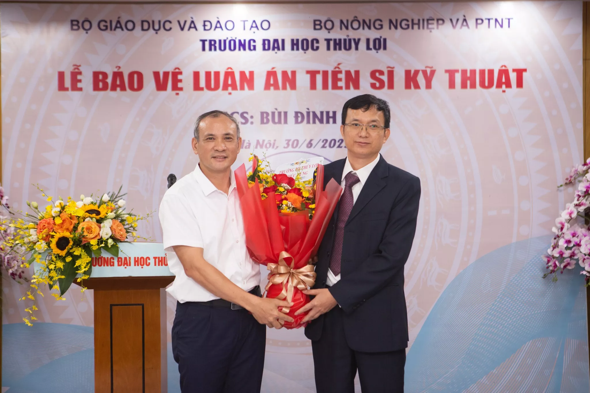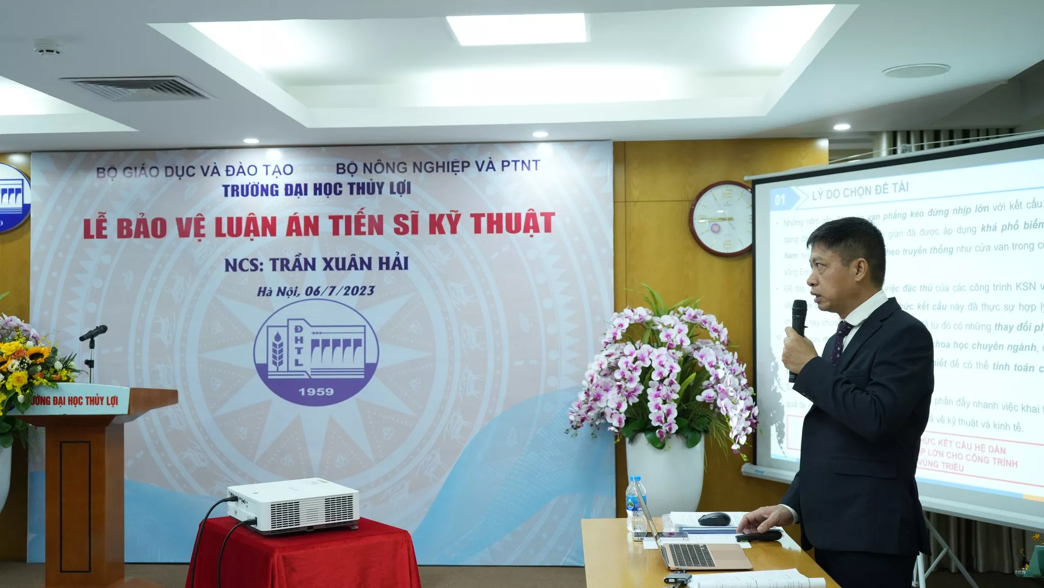 NCS Nguyễn Mai Chi bảo vệ uận án tiến sĩ cấp Trường với Đề tài: Nghiên cứu giải pháp neo xoắn để gia cường ổn định cho cấu kiện bảo vệ mái kênh công trình thủy lợi, Ngành: Địa kỹ thuật xây dựng, Mã số: 9580211. Người hướng dẫn khoa học: GS.TS. Trịnh Minh Thụ; GS.TS. Nguyễn Chiến. Việc kiên cố hóa kênh mương trong đó có hạng mục bảo vệ mái kênh hiện nay thường dùng bê tông đổ tại chỗ, tấm bê tông lắp ghép, hoặc đá lát. Các cấu kiện này có trọng lượng lớn, khi xây dựng ở...