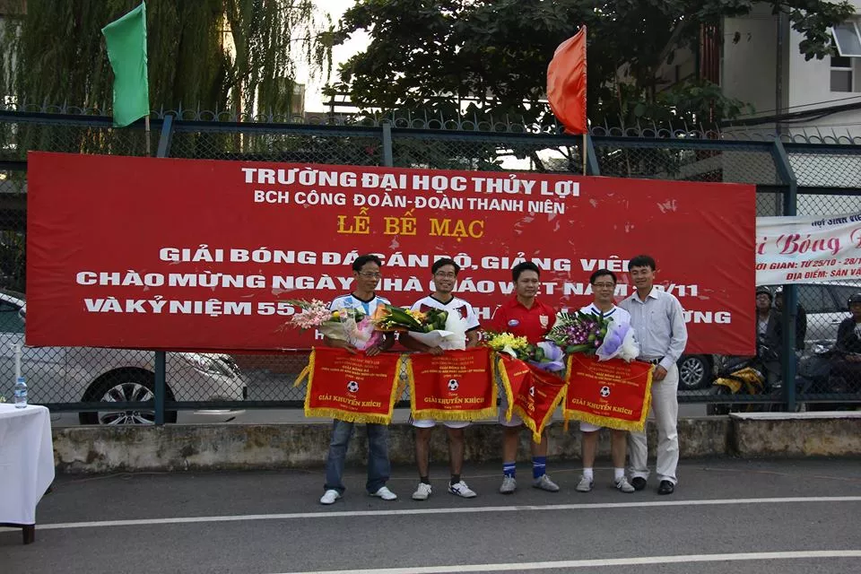 Sau hơn 20 ngày tranh tài, chiều nay, 19/11/2014 trên SVĐ ĐH Thủy lợi đã diễn ra trận chung kết và Lễ bế mạc giải bóng đá CB-GV trường ĐH Thủy Lợi. Giải đấu là một trong những hoạt động trào mừng 55 năm thành lập trường ĐH Thủy Lợi (18/11/1959-18/11/2014) và ngày Nhà giáo Việt Nam 20/11. Hai đội đã xuất sắc giành vé lọt vào trận chung kết là liên quân khoa Cơ khí – Kinh tế và công ty tư vấn và chuyển giao công nghệ. Cùng thời điểm diễn ra trận chung kết là trận...
