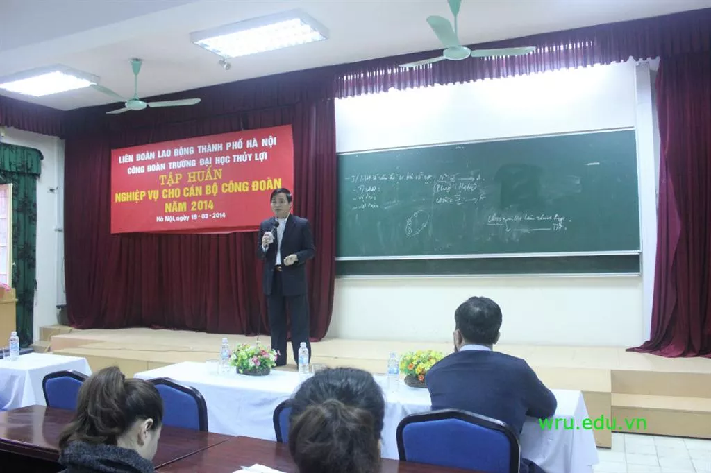 Sáng ngày 19/3/2014, tại phòng 228 – A4 trường Đại học Thủy Lợi đã tổ chức buổi tập huấn nghiệp vụ cho các cán bộ công đoàn. Đợt tập huấn này nhằm nâng cao nghiệp vụ công tác cho cán bộ công đoàn, đồng thời phát huy tối đa vai trò của tổ chức công đoàn và đội ngũ cán bộ, giáo viên trong thời gian tới, góp phần xây dựng các đơn vị vững mạnh, toàn diện, qua đó thúc đẩy công tác giáo dục và đào tạo của nhà trường. Đến tham dự buổi tập huấn có PGS.TS...