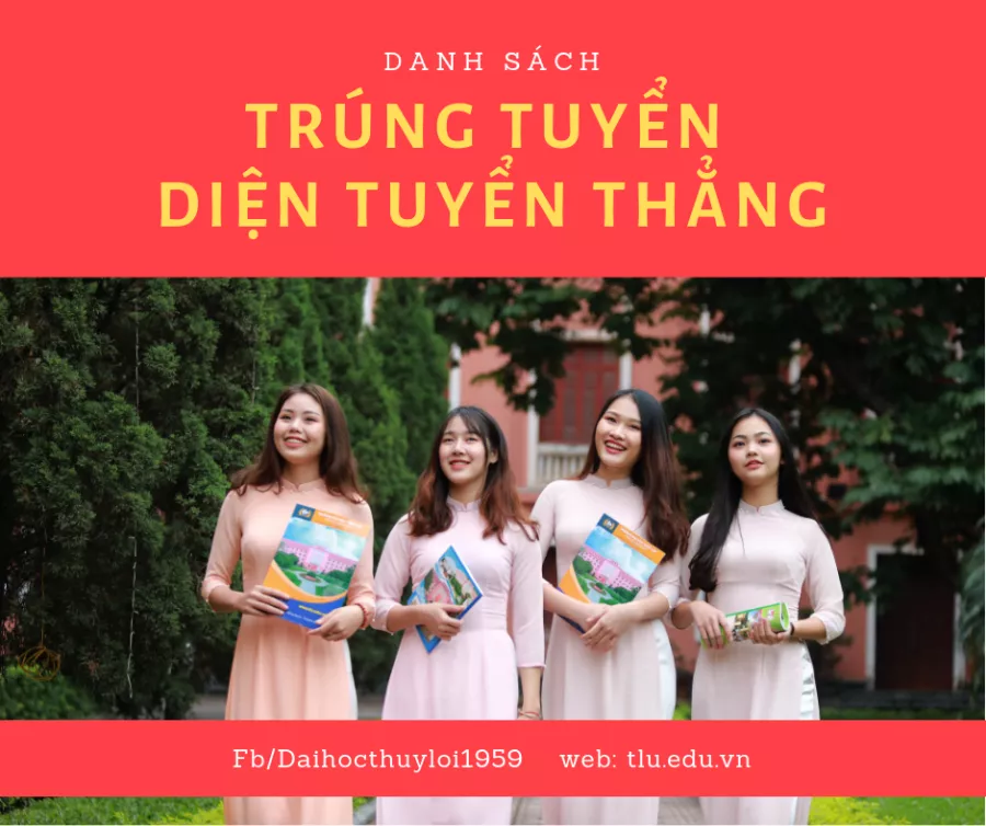 Hội đồng tuyển sinh trường Đại học Thủy lợi quyết định phê duyệt danh sách trúng tuyển đại học hệ chính quy theo diện xét tuyển thẳng vào Trường Đại học Thủy lợi năm 2019. Quyết đinh chi tiết: Xem Quyết định Danh sách thí sinh trúng tuyển: Xem danh sách Ghi chú: Từ ngày 19/7/2019 đến 17h00 ngày 23/7/2019 các thí sinh có tên trong danh sách trúng tuyển nộp bản chính giấy chứng nhận kết quả thi THPT Quốc gia năm 2019 trực tiếp tại Trường Đại học Thủy lợi: Phòng 134 – Nhà A4 – Trường Đại học...